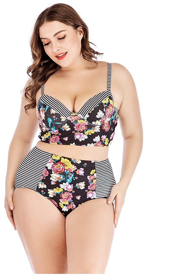 Vestibilità comoda e tessuto morbido e resistente, questo è decisamente il bikini per taglie forti più venduto e apprezzato su Amazon. La sua linea abbraccia le curve e rende giustizia a ogni tipo di fisico. Puoi scegliere tra le numerose fantasie ed è disponibile dalla taglia XXL alla 4XL.