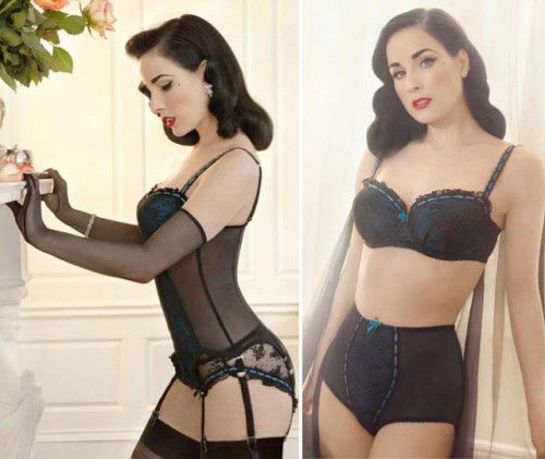 In fondo, non era nemmeno giusto. Se lo hanno fatto modelle come Kate Moss o Gisele Bundchen, perchè non lei? La regina incontrastata del burlesque e della sensualità, colei che è da sempre sinonimo di “sexy” non poteva di certo non lanciarsi nel mondo provocante della lingerie con una linea tutta sua. Ed ecco che le bellissima Dita Von Teese, dallo scorso 8 Febbraio, ha lanciato la sua “Von Follies”, un mix di pizzo, trasparenze, tessuti maculati e di velluto, in un’atmosfera vagamente retrò anni Cinquanta.