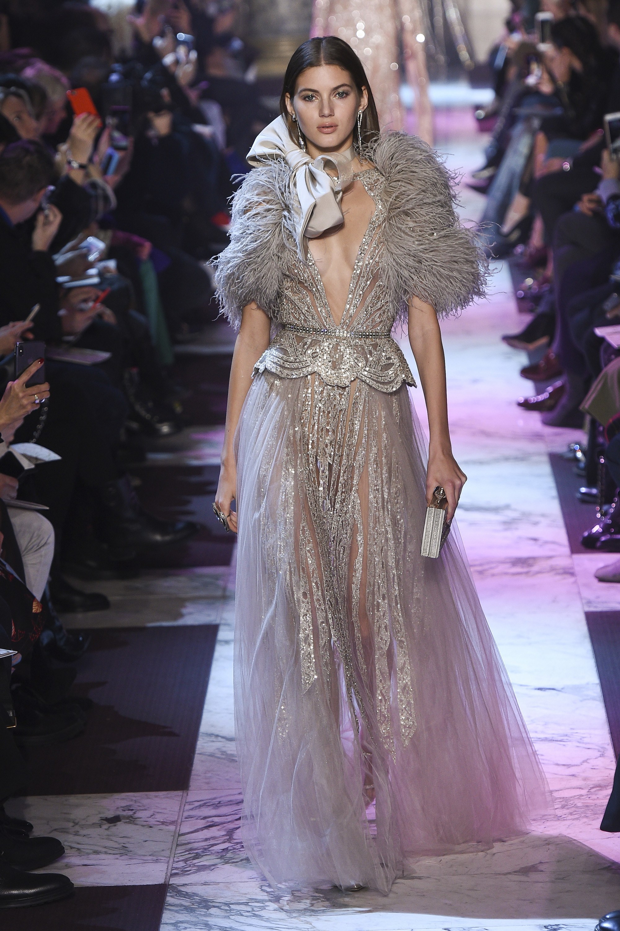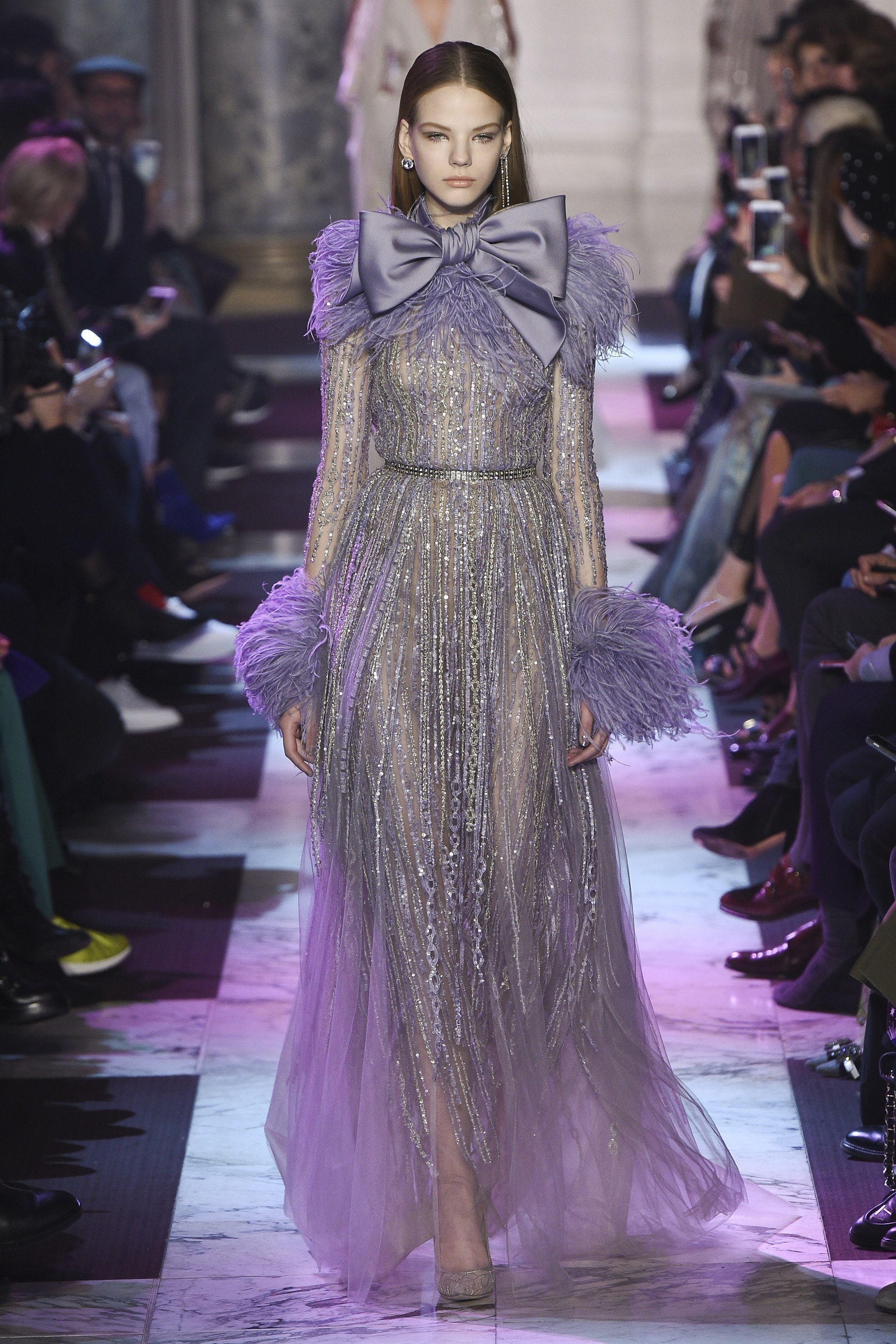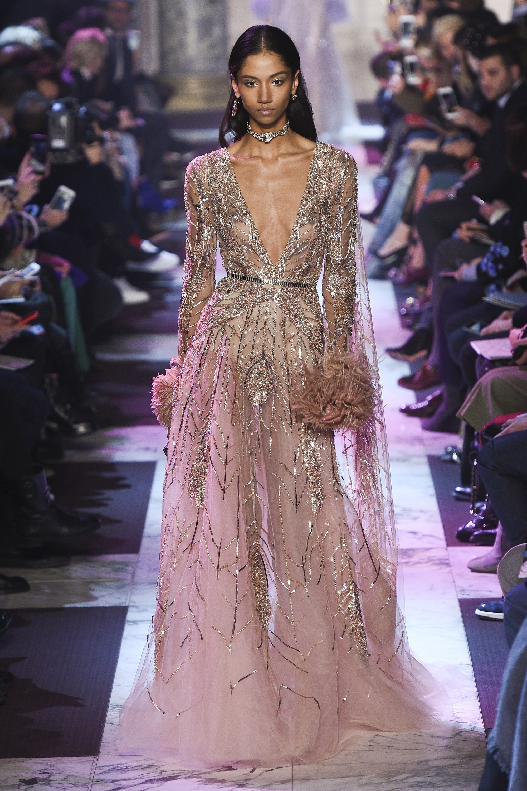 ROMA – Elie Saab Primavera Estate 2018 Haute Couture: FOTO collezione. Una collezione raffinata e principesca. Elie Saab non delude le aspettative e, in occasione della sfilata haute couture P/E 2018 porta sulla passerella abiti principeschi dal sapore retrò. Il Pavillon Cambon Capucines di Parigi si è trasformato in una elegante sala da ballo dei ruggenti anni ’20 e ha accolto le modelle con musica jazz e atmosfera vintage. Abiti color pastello impreziositi da profili brillanti hanno rapito il pubblico. Eleganti creazioni dai colori tenui alternati ad abiti neri più decisi e provocanti pur rimarcando la classe, tipica delle collezioni dellp stilista libanese.