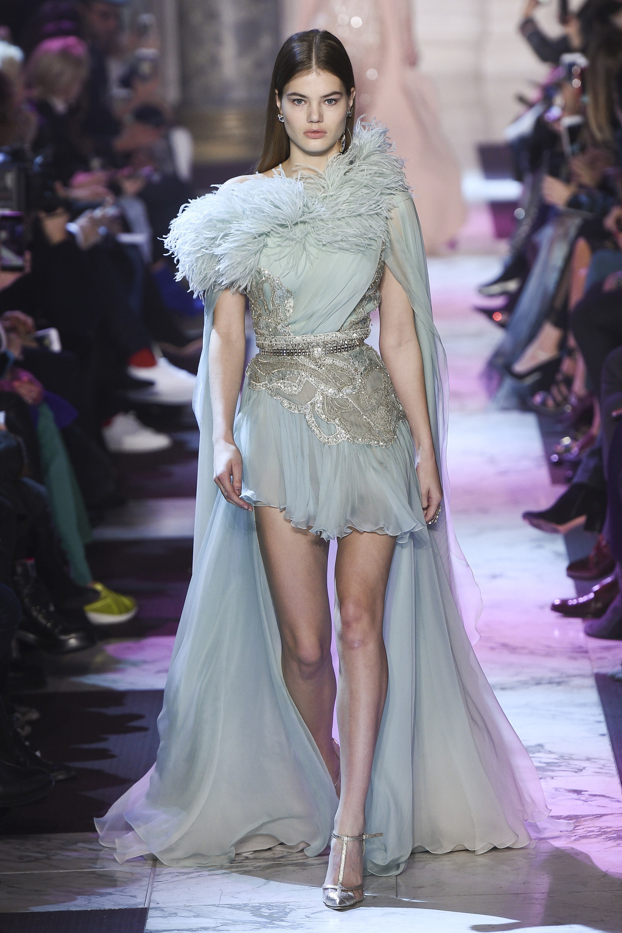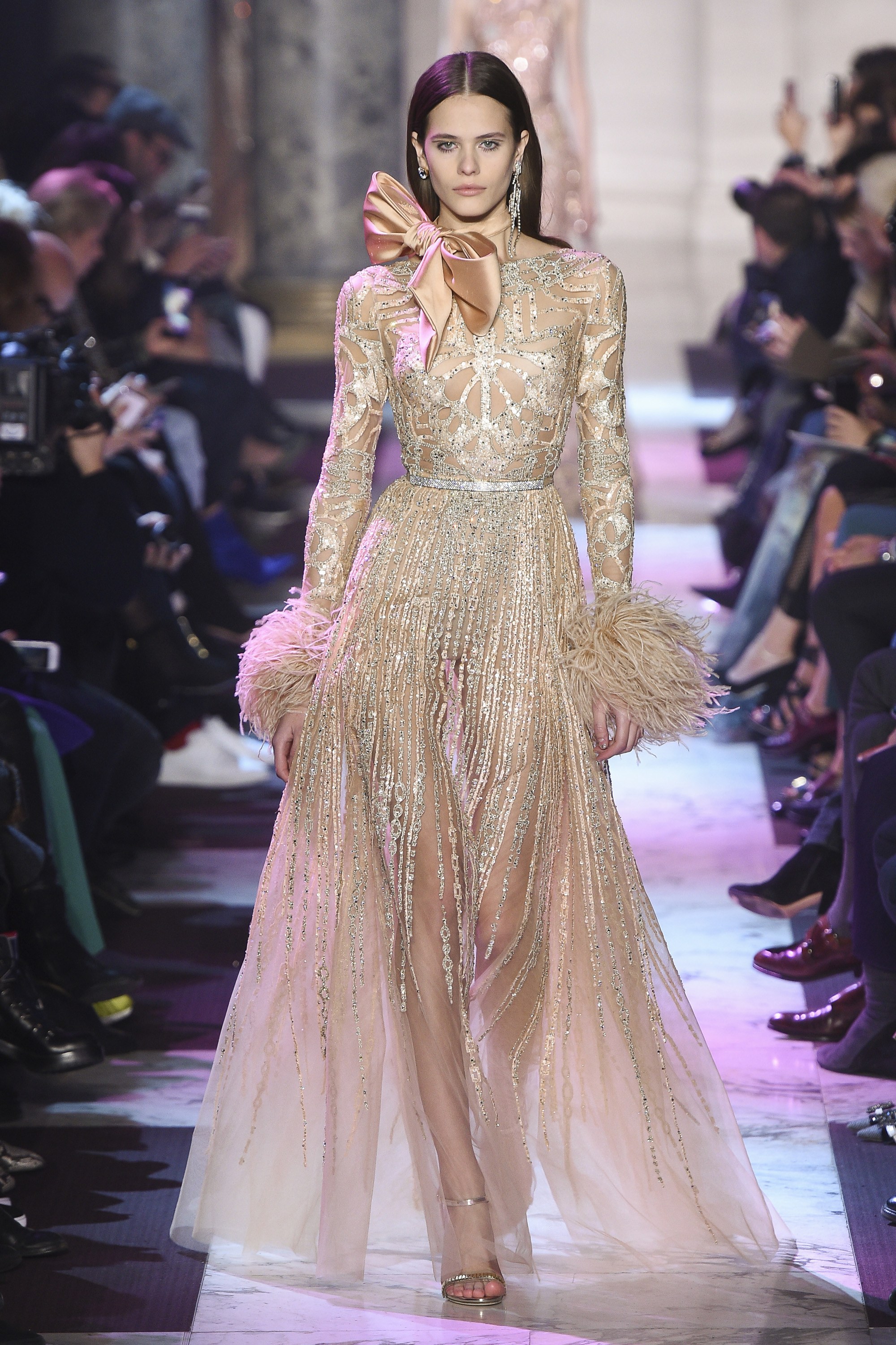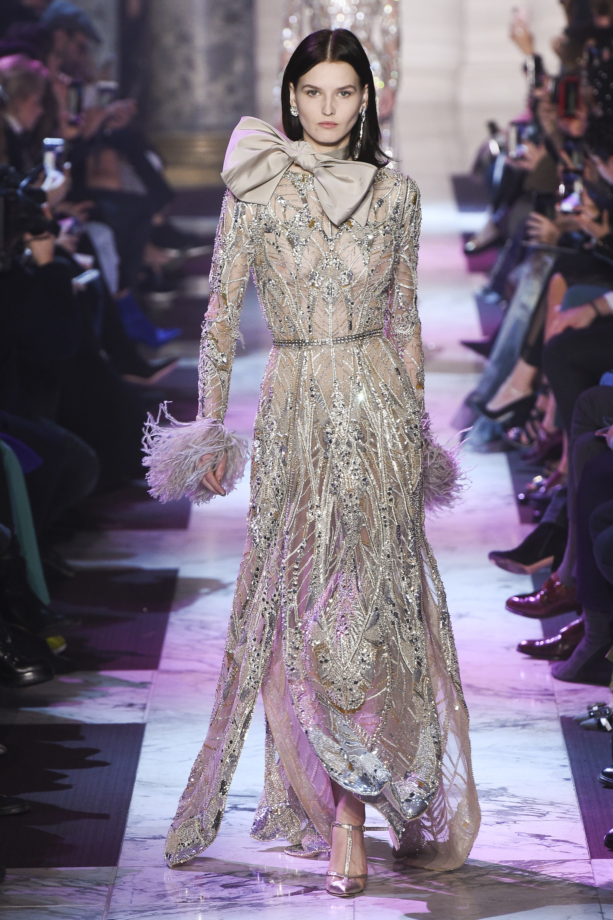 ROMA – Elie Saab Primavera Estate 2018 Haute Couture: FOTO collezione. Una collezione raffinata e principesca. Elie Saab non delude le aspettative e, in occasione della sfilata haute couture P/E 2018 porta sulla passerella abiti principeschi dal sapore retrò. Il Pavillon Cambon Capucines di Parigi si è trasformato in una elegante sala da ballo dei ruggenti anni ’20 e ha accolto le modelle con musica jazz e atmosfera vintage. Abiti color pastello impreziositi da profili brillanti hanno rapito il pubblico. Eleganti creazioni dai colori tenui alternati ad abiti neri più decisi e provocanti pur rimarcando la classe, tipica delle collezioni dellp stilista libanese.