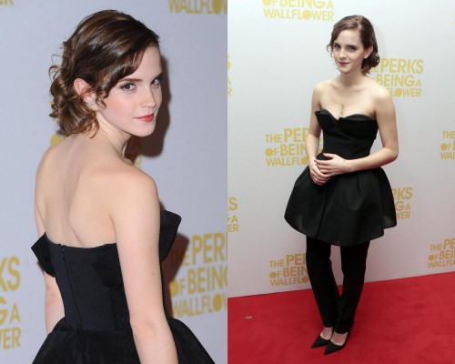 L’attrice inglese è la terza che in questa settimana ha indossato un look a/i 2012 Couture di Christian Dior dopo le colleghe Julianne Moore e Natalie Portman, ma Emma ha optato per qualcosa di più originale, indossato un abito corto con gonna a palloncino e sotto dei pantaloni a sigaretta.