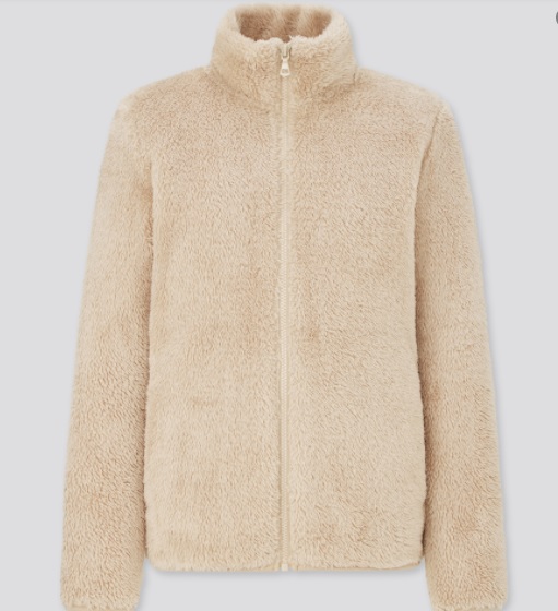 Uniqlo è un altro punto di riferimento per il look comfy e se amate le tinte uniche, sul loro sito troverete delle pellicce in pile con zip a 24,90 euro.