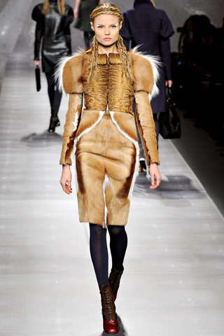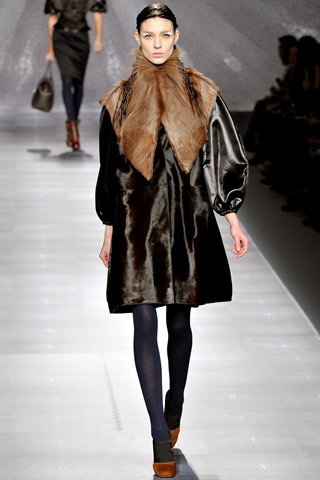 Pellicce e pelli sapientemente lavorate e mixate, come solo Fendi ama fare, riescono a creare modelli capi spalla e gonne dalle linee affilate e morbide, senza angoli.