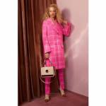 Il mondo sartoriale maschile vibra di esplosioni pop: i motivi più classici, dal Principe di Galles agli scacchi, dal pattern chevron alle losanghe, si amplificano grazie ad una palette dai colori vivaci, come accade nel cappotto Principe di Galles con intarsi in pelle e visone sull’abito a scacchi in lana rosa fluo. Il Principe di Galles si trasforma in modo inaspettato, intarsiando uno sheraling doppio petto impreziosito da polsini in visone giallo, espressione del savoir-faire artigianale di Fendi. (Ansa).