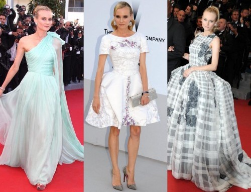 Diane Kruger in abiti (da sinistra) Giambattista Valli, Chanel e Christian Dior
