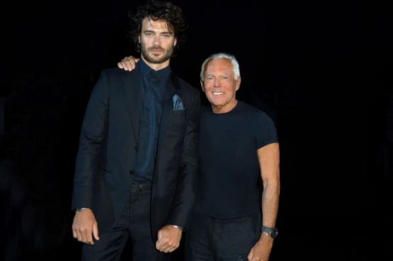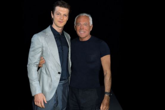 L'attore Giulio Berruti insieme a Giorgio Armani