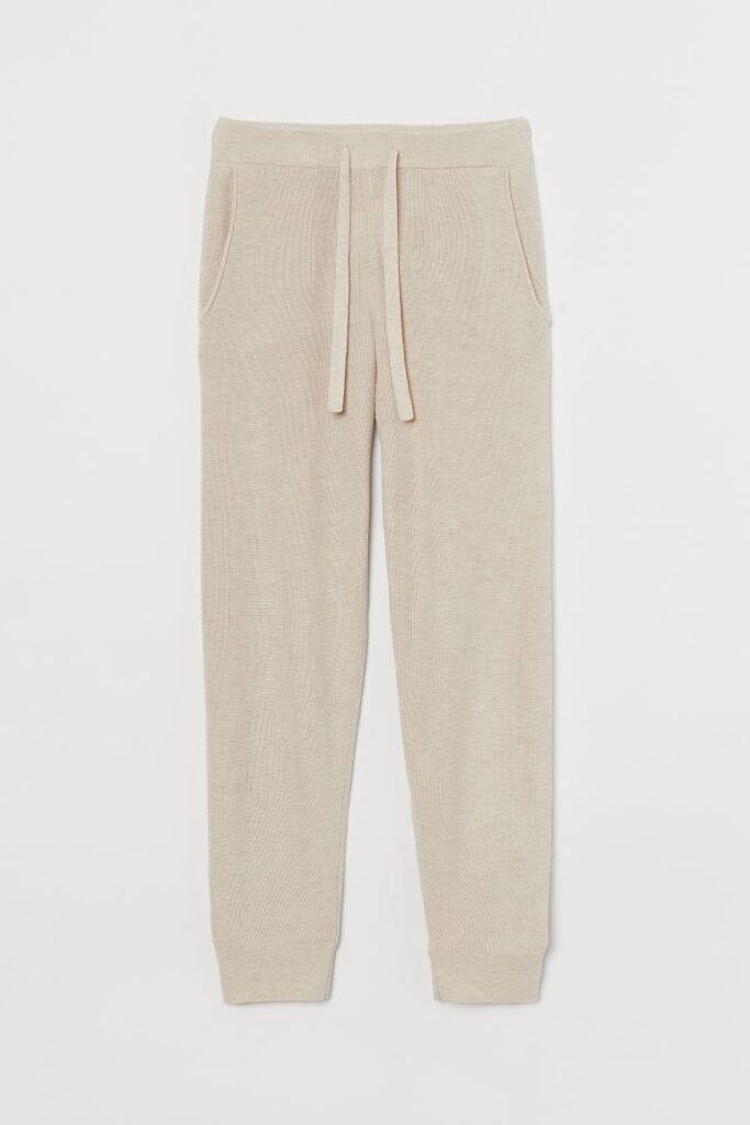 Girando per il web ho trovato questi jogger di H&M che sembrano proprio fare al caso nostro. Si tratta di un paio di jogger in morbida maglia fine con lana. Vita normale con elastico e coulisse nel girovita. Tasche laterali oblique. Linea stretta in basso, bordo in maglina a fondo gamba.