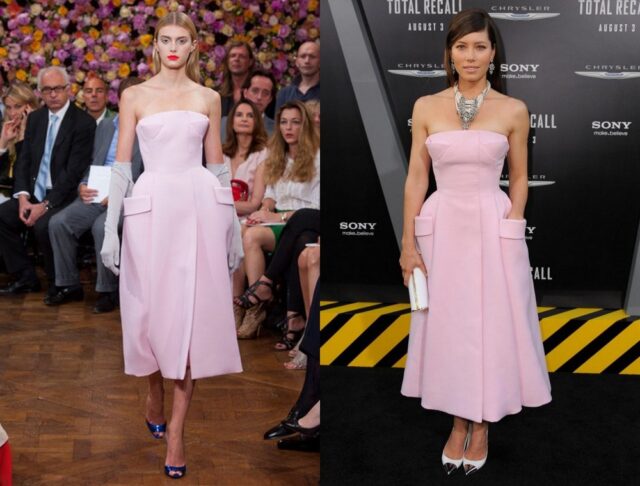 LOS ANGELES – Il rosa confetto non è un colore facile da portare, soprattutto se non è solo un accessorio ma un intero abito in quanto facilmente si può ricadere nel lezioso. Ma Jessica Biel, in occasione della prima di “Total Recall” a Los Angeles, è riuscita ad interpretare alla perfezione questo abito rosa Christian Dior della collezione Couture a/i 2012 senza spalline, stretto in vita e con il dettaglio della maxi tasca esterna.