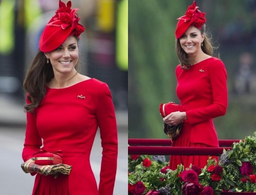 Ci ha pensato la bella ate Middleton ad illuminare la giornata, che, oltre al suo raggiante sorriso, ha indossato un abito rosso brillante Alexander McQueen della collezione Pre-Fall 2011, ovviamente “adattato” a dovere.