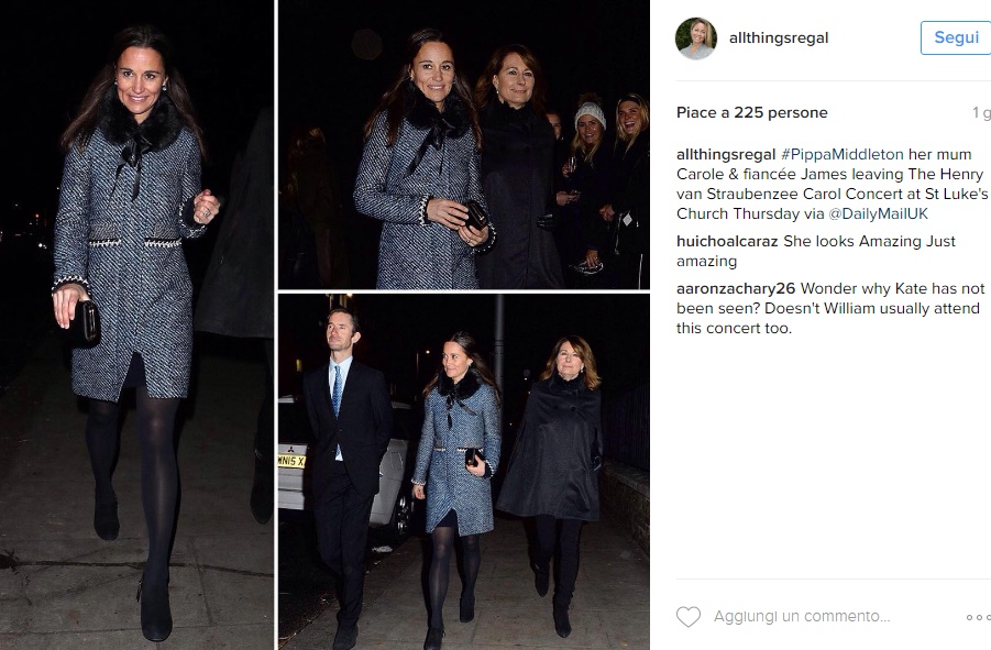 In questi giorni Pippa viene spesso vista in quel di Londra alle prese sia con i regali di Natale (secondo i rumors quest’anno lo passerà insieme a tutta la famiglia Middleton, compresa la sorella Kate e il cognato William con i principini George e Charlotte al seguito) sia con gli ultimi preparativi per il suo imminente matrimonio con il finanziere James Matthews. Nelle ultime settimane è anche trapelata la data delle nozze: secondo quanto riportato dal Telegraph, la sorella della Duchessa si sposerà con molta probabilità il prossimo 20 maggio nella Chiesa di St Mark’s, nel Berkshire, in Inghilterra. Il condizionale è d’obbligo in questi casi, ma in attesa di una conferma da parte dei diretti interessati, possiamo iniziare a fantasticare su come sarà l’attesissima cerimonia.