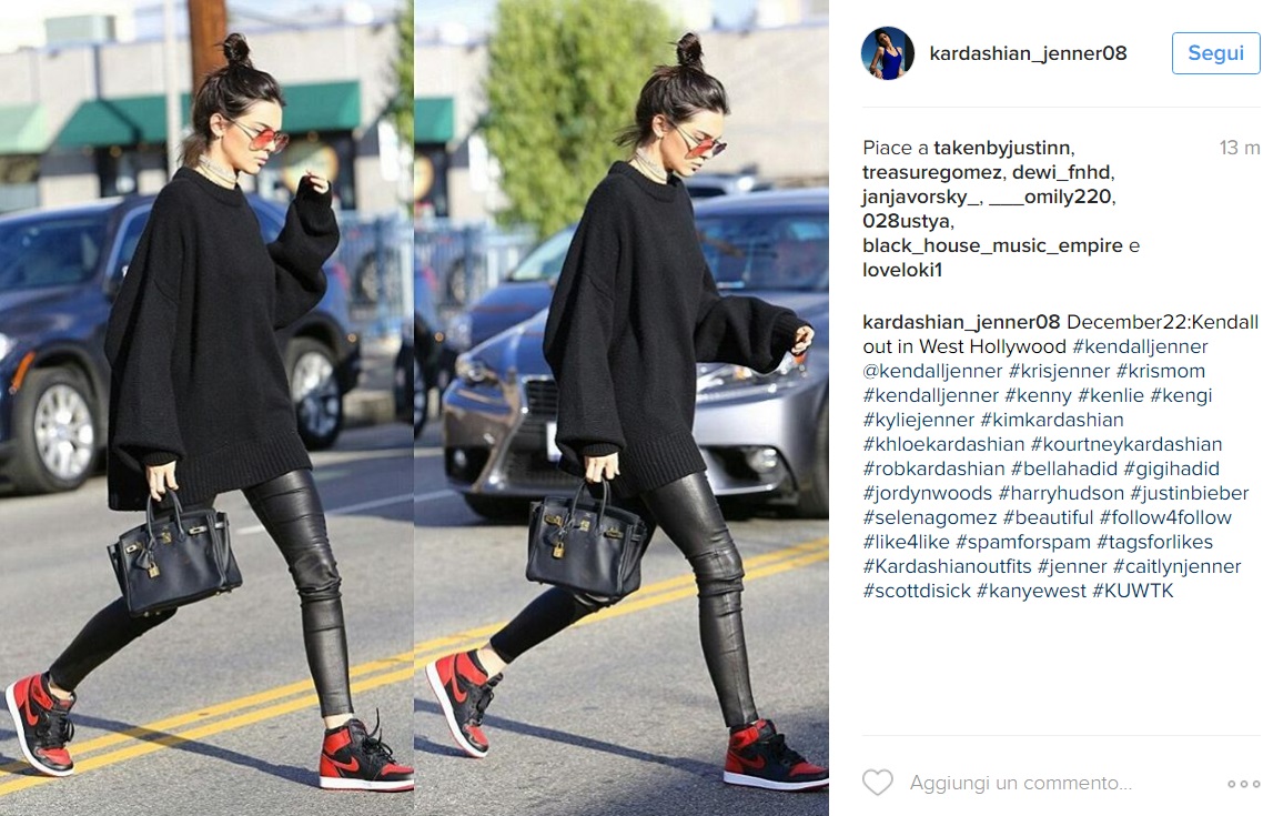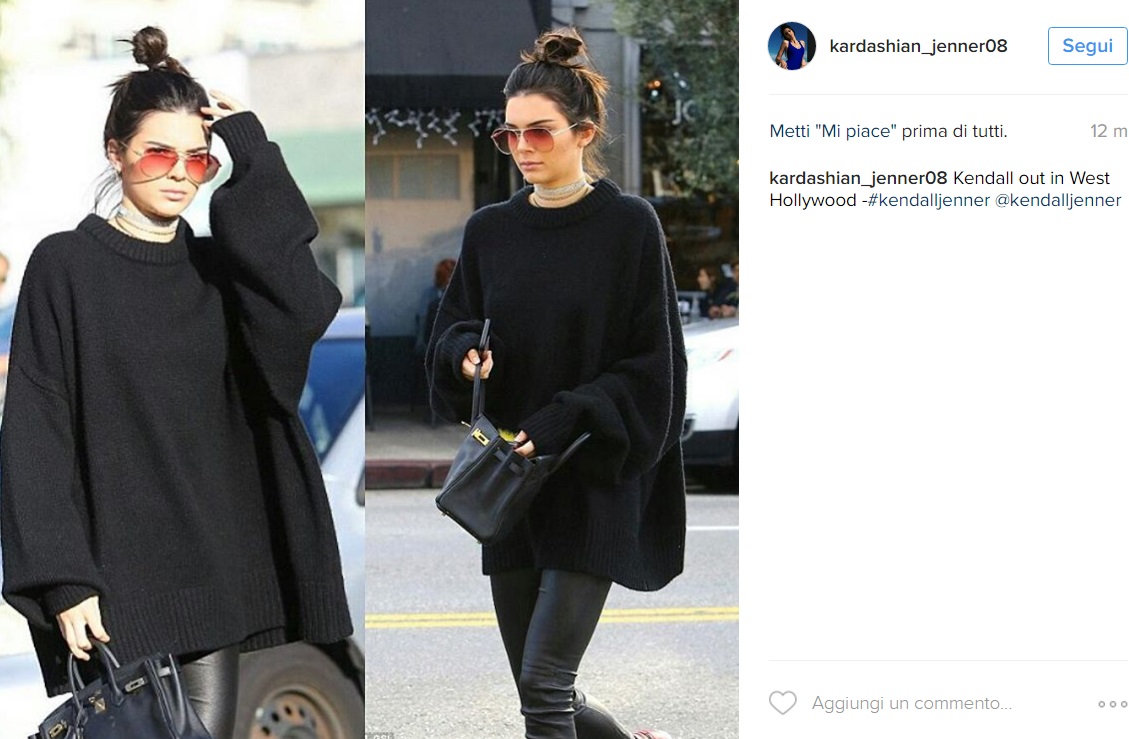 LOS ANGELES – Kendall Jenner casual: legging di pelle e maxi maglione FOTO. Look casual ma incredibilmente glamour per Kendall Jenner che, paparazzata per le vie di Los Angeles, ha sfoggiato una mise total black incredibilmente fashion e sportiva: legging di pelle aderentissimo, maxi maglione, sneaker ai piedi e borsa Hermes al braccio, Kendall ha focalizzato l’attenzione dei fotografi con il suo look attuale e pratico. Che dire, nonostante il look semplicissimo, Kendall è apparsa super glamour. I legging hanno messo in risalto le gambe slanciate e toniche di Kendall, che come al solito non è passata inosservata.