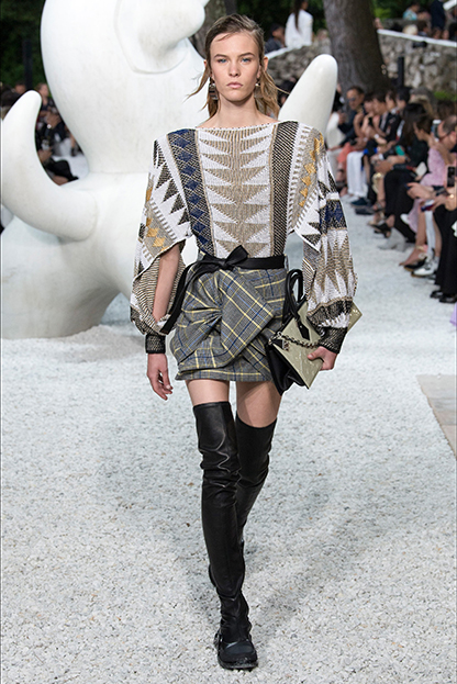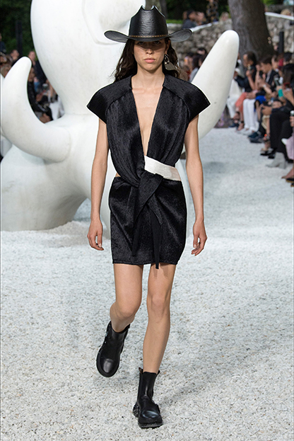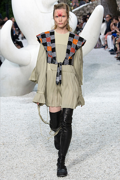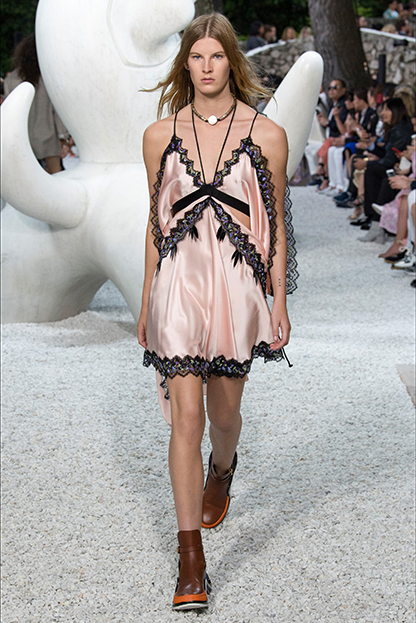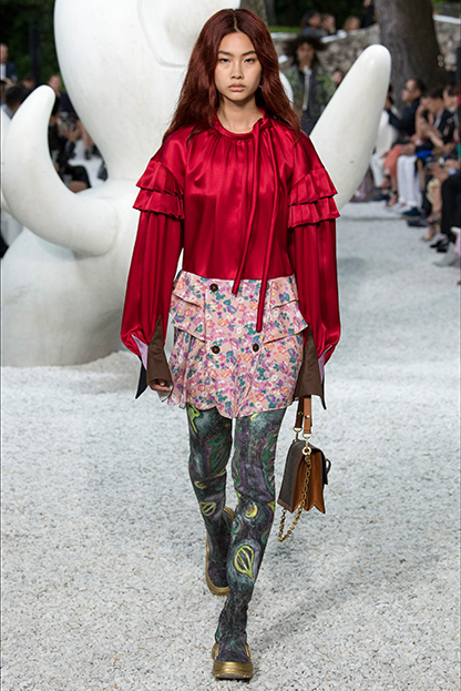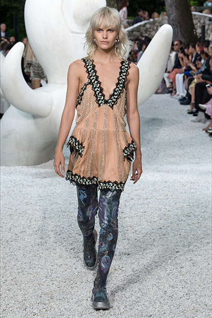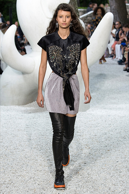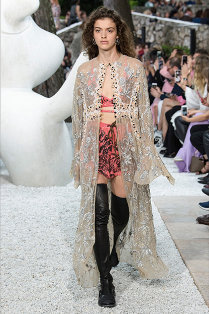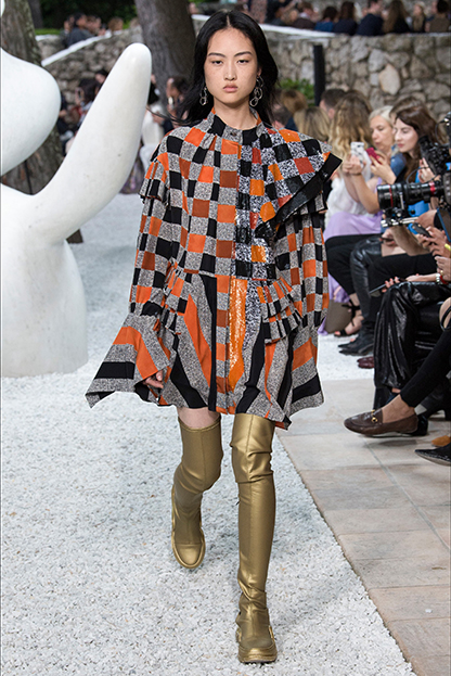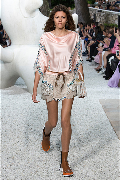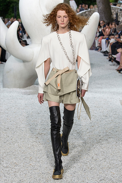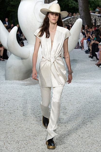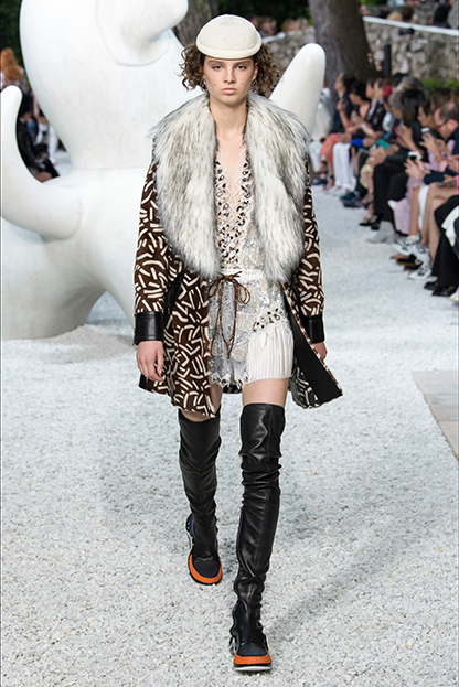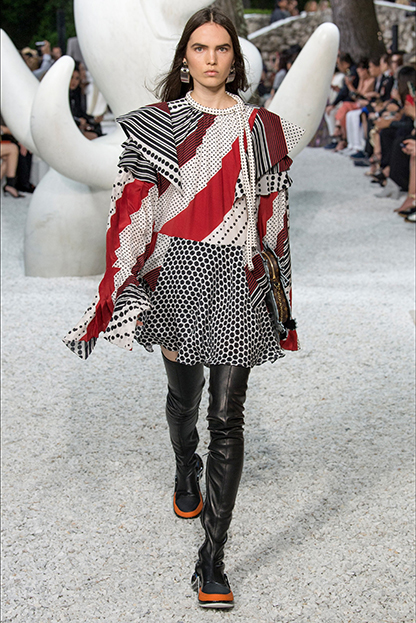 Scostumista – La Collezione Resort di Luois Vuitton alla Fondazione Maeght – La Fondazione Marguerite e Aimé Maeght si trova al sud della Francia, a Saint-Paul de Vence vicino a Nizza, capolavoro del modernismo architettonico progettato negli anni ‘50 dal catalano Josep Lluís Sert. Qui sono esposte in forma permanente opere di arte moderna e contemporanea di pittori e scultori del Novecento come Jean Mirò, Georges Braque, Raoul Ubac, Marc Chagall, Henri Matisse, Pierre Bonnard, Alberto Giacometti, Eduardo Chillida e Fernand Léger. Ed è tra queste opere che Nicolas Ghesquière ha deciso di far sfilare la collezione Resort Primavera/Estate 2019 di Louis Vuitton. Dopo le grandiose scenografie del Bob & Dolores Hope a Palm Springs, del Mac Niteroi in Brasile e del Museo Miho in Giappone la scelta del direttore creativo della storica Maison di esporre le proprie creazioni in questo meraviglioso scenario è assolutamente in linea con le precedenti. Con questa collezione Ghesquière rende omaggio all’eccentricità. Attraverso la nozione di stile personale, fa sfilare una collezione dal linguaggio completamente opposto a quello espresso nella precedente collezione autunno/ inverno 2019, che da alcuni è stata definita più borghese e poco audace. Nella corte di Giacometti le modelle attraversano il labirinto di sculture di Miró indossando alcune delle creazioni firmate Ghesquière delle ultime stagioni, amplificate e remixate per creare nuovi look inaspettati. I volumi sono pompati, lunghi abiti a pieghe si alternano a mini-dress, dettagli di lingerie si impreziosiscono di perline, denim lavati con acido sono stati dipinti a mano con motivi geometrici, vaghi richiami anni’80 sono mixati allo street-style, delicati top ricoperti di piume contrastano con le curve futuristiche delle silhouette oversize, e indistintamente, le sneakers-cuissard completano ogni look. Le borse sono frutto della collaborazione con Grace Coddington, ex direttore creativo di Vogue, basate sugli schizzi che lei fa accostando all’iconico pattern monogramma di LV, le illustrazioni dei suoi due gatti, Pumpkin e Blanket, e di Léon, il cane di Nicolas Ghesquière. Tra gli ospiti: Emma Stone, Sienna Miller, Jennifer Connelly, Léa Seydoux, Justin Theroux, Ruth Negga e Isabelle Huppert. L’artista francese Woodkid, con una performance musicale dal vivo ha riunito gli strumenti inventati dai fratelli Baschet negli anni ’50, quando condussero i loro esperimenti acustici creando sonorità attraverso le vibrazioni del vetro e del metallo. Ghesquière riesce così a far dialogare moda, architettura, musica e natura attraverso un linguaggio sperimentale e una visione d’avanguardia, percorso che lo stilista sta affrontando da cinque anni, per portare un brand storico e classico verso codici più innovativi. La scorsa settimana Nicolas Ghesquière su Instagram ha annunciato di aver rinnovato il contratto con Louis Vuitton con l’hashtag #notgoinganywhere. Michael Burke, presidente e amministratore delegato di LV, ha dichiarato che il designer rimarrà alla direzione creativa del marchio per almeno altri cinque anni. “Personalmente penso che se vuoi sviluppare un vero punto di vista audace, un punto di vista diverso, devi concederti del tempo”, ha aggiunto Burke. Lo straordinario lavoro del designer francese avrà così modo di continuare ad evolversi e arricchire un brand così pieno di storia aggiungendovi una visione moderna e contemporanea sempre pronta ad interagire con pezzi d’arte come quelli che hanno fatto da sfondo a questa sfilata. di Annapaola Brancia d’Apricena