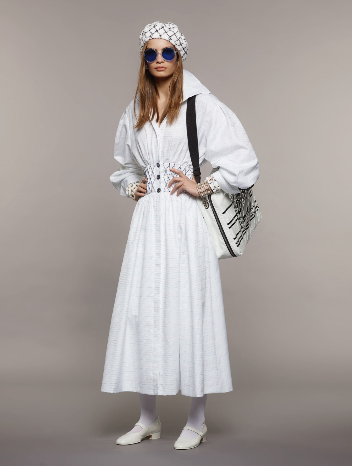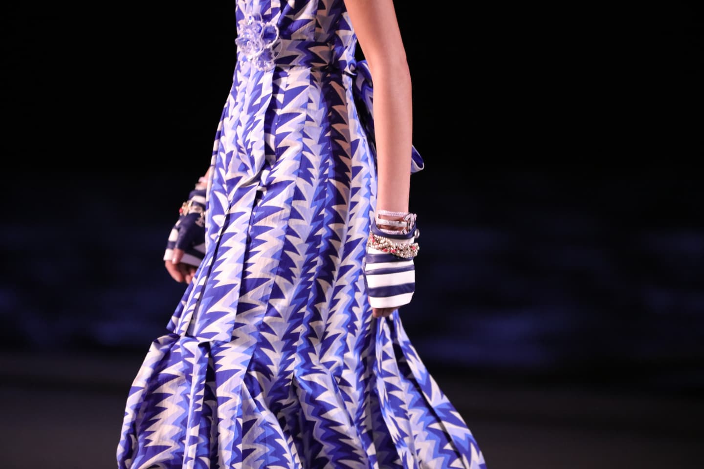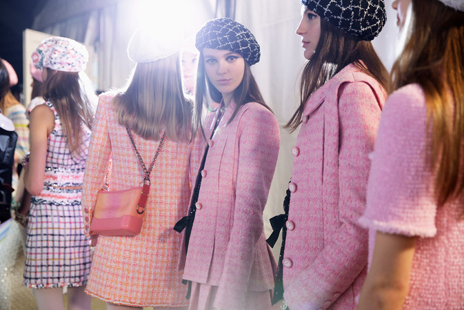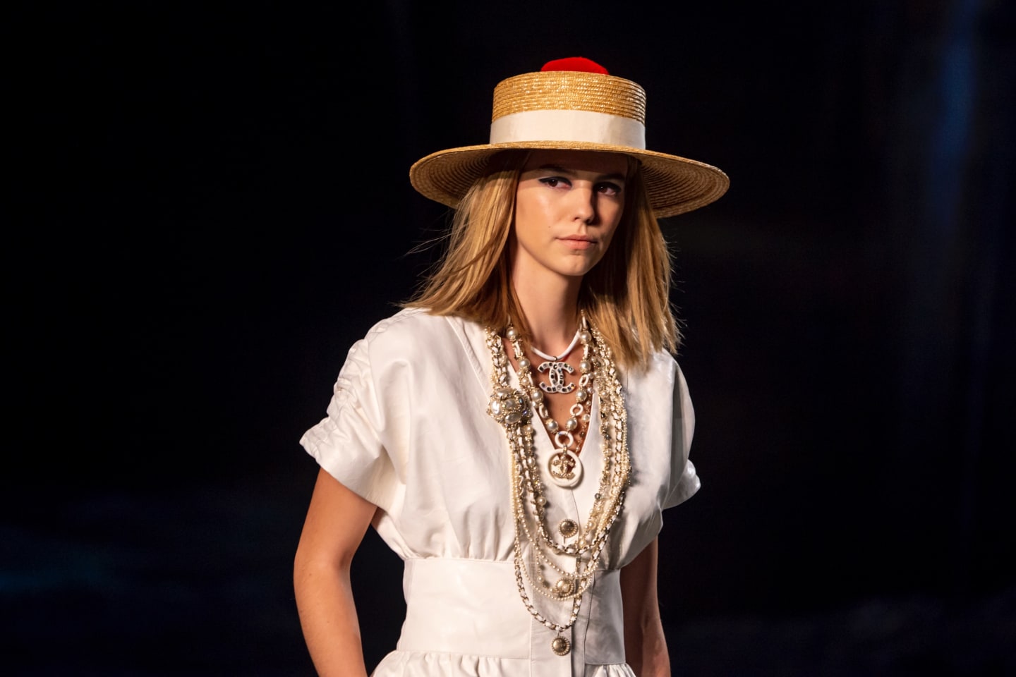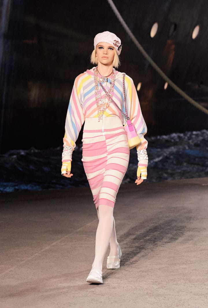 Scostumista– La Pausa-Chanel Cruise 2018/19 – Il capitano Karl Lagerfeld ha presentato la Cruise Collection 2018/19 mentre cadeva la notte su “La Pausa”, il transatlantico Chanel ormeggiato al Grand Palais di Parigi. Riprendendo il nome della villa costruita da Gabrielle Chanel, arroccata a Roquebrune-Cap-Martin in Riviera, “La Pausa” era l’amata residenza estiva di Coco. L’amore di Gabrielle per lo yachting e il mare le offrivano l’opportunità di concedersi una pausa dalla sua vita frenetica di Parigi, ricaricare le batterie e cercare nuova ispirazione. Dopo aver scelto destinazioni come Cuba e Dallas per mostrare le sue collezioni resort, questa stagione Chanel è tornata a Parigi con l’obiettivo di celebrare il concetto di moda da crociera in senso letterale. Con il fischiettio di “The Whistle song” si apre la sfilata che comprende più di ottanta outfit. Il Mar Mediterraneo ispira le silhouette, e il nome della nave è stampato sui bottoni di giacche di tweed, bracciali e maglioni. I maglioni a costine color crema hanno bottoni dorati con l’ancora, e ampi pantaloni bianchi sono indossati con Mary Janes rigorosamente flat, come da etichetta per poter salire a bordo. Il bianco, il colore principale della collezione Cruise, ricorda la schiuma sulle onde e le scie lasciate dalle barche mentre si muovono attraverso l’acqua, così come l’uniforme dell’equipaggio di una nave. Il concetto vintage di abbigliamento da crociera o da resort ha preso il centro della scena con pantaloni a righe, top bretoni e giacche monopetto con scollature a barca. Giacche di tweed, gonne corte e pieghettate, così come abiti, sono indossati in una palette pastello di tonalità rosa per una silhouette femminile. Le modelle indossano un basco in tweed modellato senza cuciture, ricamato con paillettes, total -white, incrociato con il blu o in versione tricolore bianco, corallo e albicocca. Gli occhiali sono oblò dalla lente blu specchiata. Gli abiti da sera sono decorati con perline, mentre il classico tweed della casa si presenta con una gonna a pieghe e una giacca corta. Righe orizzontali blu e bianche ricorrono su abiti impreziositi da piume. L’uniforme da marinaio, appare in vari motivi in tutta la collezione su top, bracciali con polsini e guanti senza dita, e affiorano su popeline di cotone, chiffon di seta e rete da pesca. La Boy di Chanel assume una nuova forma per la collezione Cruise 2018/19. La borsa cross-body in pelle trapuntata ha i colori nautici della collezione. Cavalcando l’onda della moda per gli slogan, la Maison ha presentato t-shirt e felpe stampate con il motivo La Pausa. Tra i compagni di navigazione c’erano Gigi e Bella Hadid e Kaia Gerber che ha chiuso lo spettacolo. Tra gli ospiti in banchina: la brand ambassador Kristen Stewart, Lily-Rose Depp e Margot Robbie. Gli invitati allo spettacolo Cruise 2018/19 sono poi saliti a bordo del transatlantico “La Pausa” per l’after party, e per assistere ad un’esibizione speciale della cantante Corine. “Quando la collezione crociere arriverà in negozio a novembre, la donna Chanel sarà molto felice di vederla lì”, ha detto il presidente di Chanel, Bruno Pavlovsky prima dello spettacolo, “c’è qualcosa di speranzoso al riguardo, qualcosa che suggerisce che possiamo fuggire, qualcosa che dice che possiamo navigare lontano da tutto “. di Annapaola Brancia d’Apricena