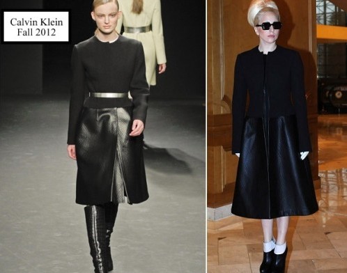 Scarpe con maxi zeppa e plateau a parte, bisogna dire che il cappotto plongé in lana tecnica zigrinata color onice della collezione Calvin Klein Collection Autunno/Inverno 2012, disegnato da Francisco Costa, le donava molto.