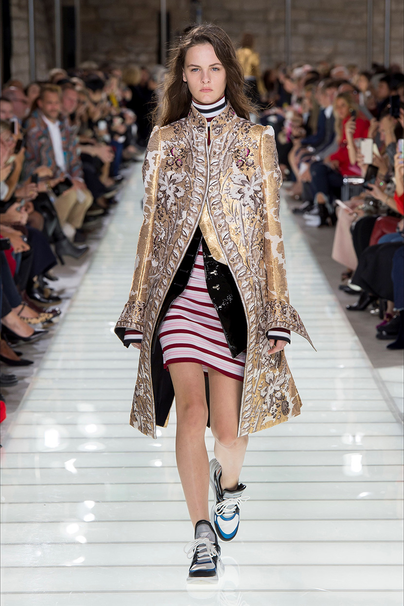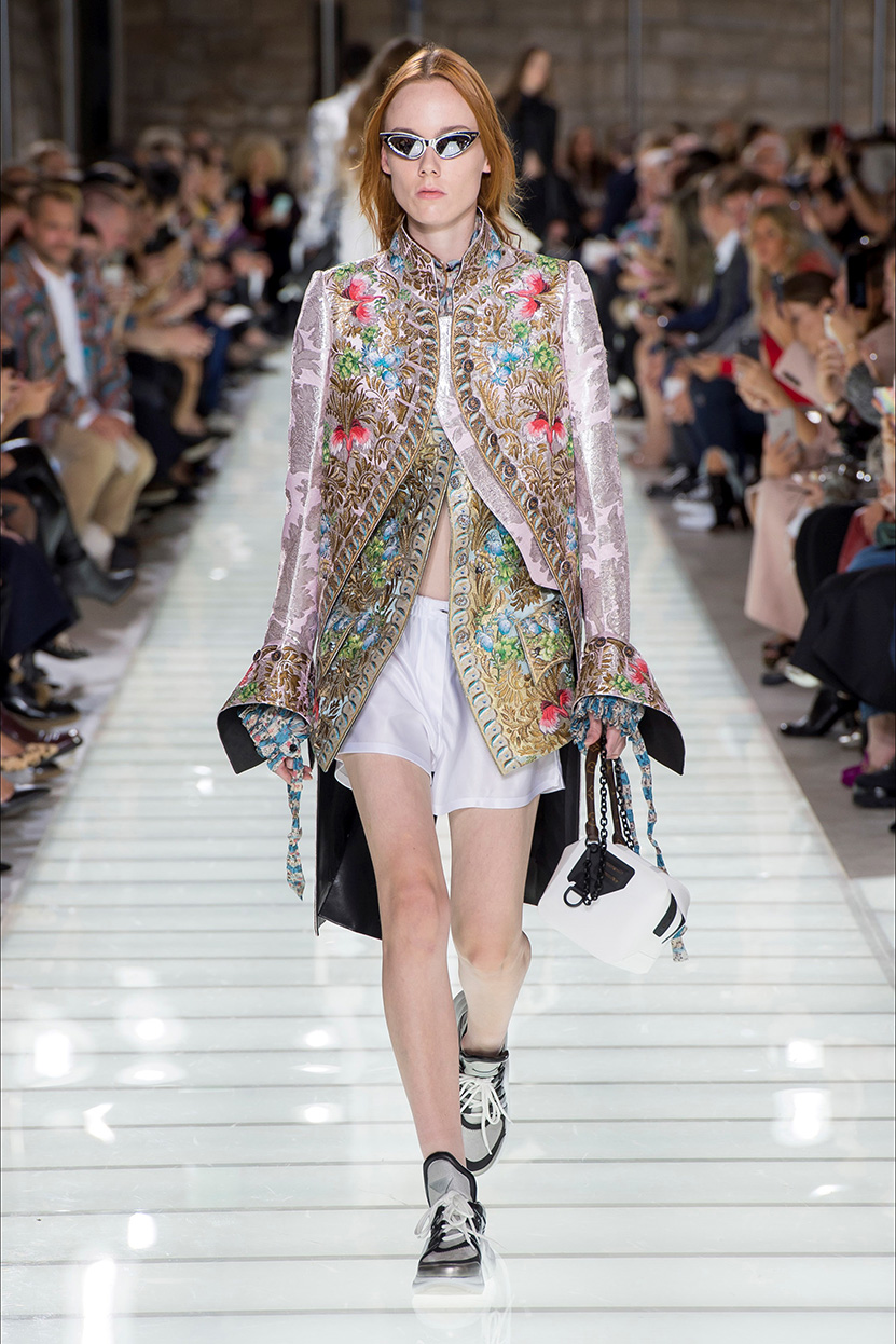 Scostumista-Lo Styling Anacronistico di Vuitton – Spesso la tendenza degli stilisti è quella di andare a cercare ispirazione dalla moda che si è succeduta nel secolo scorso, ma c’è chi, approfittando della vastità delle fogge dell’abbigliamento nei secoli addietro, si è spinto più in là. Alessandro Michele ama mischiare riferimenti all’ antica Roma, all’Inghilterra Tudor, alla Francia medievale e all’Italia rinascimentale, alla Parigi degli anni ’30, insieme alla Londra degli anni ’70 e agli anni ’80 di Harlem. La sfilata Cruise 2017/18 di Chanel intitolata “La modernité de l’antiquité” celebrava il classicismo greco mischiando le intramontabili giacche in tweed, segno distintivo della Maison, con tuniche e pepli rivisitati. John Galliano, ai tempi della sua direzione artistica per Christian Dior, ha progettato bellissimi abiti e corpetti d’ispirazione settecentesca. Per la collezione Primavera-Estate 2018 di Louis Vuitton, anche Nicolas Ghesquière fa riferimento all’ “âge des lumières” facendo sfilare le classiche inquartate maschili lunghe al ginocchio su micro-short, pantaloni in vinile e sneakers futuristiche. Redingote in tessuto broccato arricchite da preziosi ricami si sovrappongono a tessuti tecnologici per un mix-and-match che abbraccia quasi quattro secoli. Il Settecento rivisitato è un tema già sperimentato da Guesquière ai tempi della sua direzione artistica da Balenciaga, con la Collezione Primavera /Estate 2006, dove marsine bianche e avorio strette in vita si allargavano sui fianchi in strati di balze e volant. Ciò che però rende più interessante questa collezione di Louis Vouitton non è tanto la redingote di per sé, che anzi ha una ripresa più letterale dell’originale settecentesca rispetto a quella progettata per Balenciaga dove l’evoluzione della forma è più evidente, ma in quest’ultima collezione Vuitton, è lo styling a rendere interessante l’outfit, l’anacronismo degli stili che si contrappongono e si mescolano in modo sorprendente e imprevisto. I pezzi elaborati, ispirati al guardaroba dell’aristocrazia francese del XVIII secolo, nobilitano l’abbigliamento sportivo dei giorni nostri, tutto si centrifuga perfettamente e Alessandro Michele che ha sempre portato la storia del costume nelle sue collezioni Gucci è guru indiscusso di questa tendenza che vede sempre più l’avanzare dell’importanza di un approccio allo styling già nel momento della progettazione di una collezione. di Annapaola Brancia d’Apricena