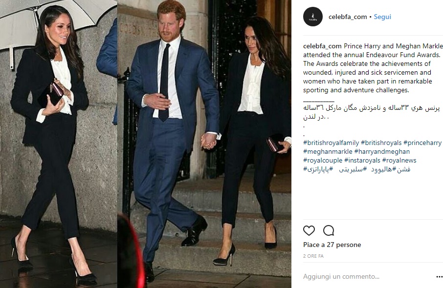 ROMA – Look del giorno: copia Meghan Markle! 3 pezzi facili FOTO. Se la mattina ti svegli e non sai proprio cosa indossare, copia Meghan Markle e vai sul sicuro! In occasione della sua ultima uscita pubblica insieme a Harry, Meghan ha infatti sfoggiato un look strategico e incredibilmente chic: completo nero giacca e pantalone su camicia bianca. Un evergreen che risolve davvero tutte le situazioni! Il completo nero è un vero passepartout: adatto ad ogni occasione, può essere reso elegante se abbinato a scarpe con tacco e clutch ma può diventare anche casual se indossato con mocassino e borsa a spalla.
