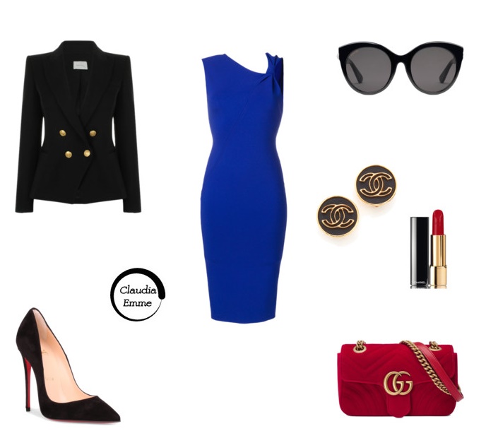 Una volta scelto l’abito, abbina una giacca elegante di colore nero (inutile specificare che ne puoi trovare di tutti i modelli e a tutti i prezzi) e una scarpa con tacco sempre di colore nero. Come puoi osservare, il blu acceso e il nero sono due colori che stanno benissimo insieme e riescono a rendere il look molto elegante e professionale.