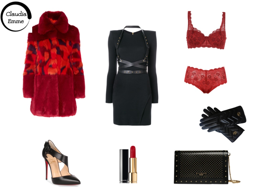 Ti senti aggressive? Scegli un tubino con lacci in pelle (questo è Balmain) aderente e corto. Abbina un paio di scarpe con tacco nero, cappotto di pelliccia (finta, ovviamente!) e borsa e guanti in pelle. Scegli un intimo sensuale, rosso in pizzo come quello di Triumph selezionato da noi... lui non saprà resisterti!
