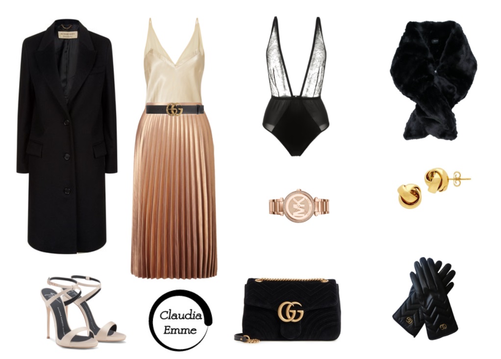 Se non vuoi rinunciare alla gonna plissettata, vero must have di stagione, abbinala ad un top in seta (o simil seta) e aggiungi un sandalo aperto. Dettagli neri sdrammatizzeranno il look e l'intimo a body trasparente e in pizzo come quello Fleur du Mal farà impazzire il tuo lui!
