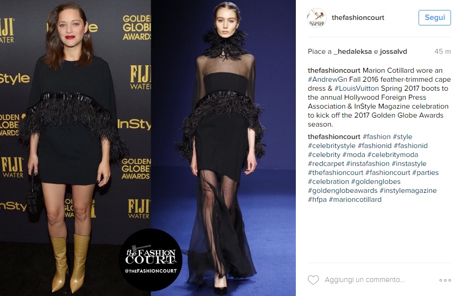 LOS ANGELES – Marion Cotillard incinta: impeccabile in abito corto nero FOTO. È una delle attrici più belle e affascinanti di Hollywood e, se ciò non fosse già abbastanza chiaro, il red carpet in occasione dell’evento che ha aperto la stagione delle premiazioni dei Golden Globe ha tolto ogni dubbio. Marion Cotillard, 41 anni, è apparsa bellissima con un abito corto firmato Andrew Gn. Il vestitino, corto in tulle e piume a frange, calzava benissimo all’attrice e metteva in risalto anche il suo pancione. Stivali Louis Vuitton e rossetto rosso acceso completavano il look glamour e chic dell’attrice.