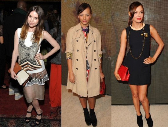 L’attrice Rose McGowan è andata sul sicuro, indossando un abito nero della collezione Marni Resort 2012 impreziosito dalla scollatura “nude”. Maxi clutch rossa e collana extra long della collezione Marni p\e 2012 completavano il look.