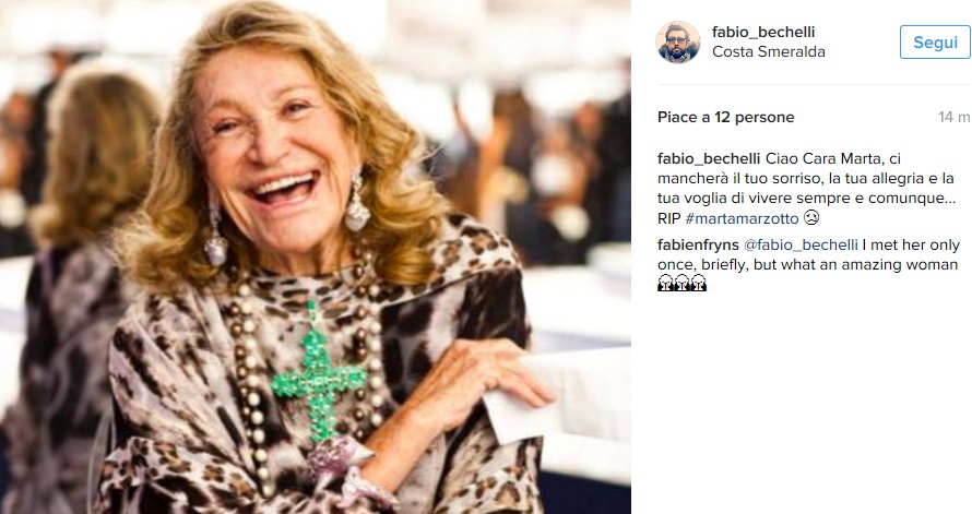 Profondo lutto per il mondo della moda e non solo.Marta Marzotto, infatti, era un punto di riferimento in diversi ambiti. Scrive Repubblica: