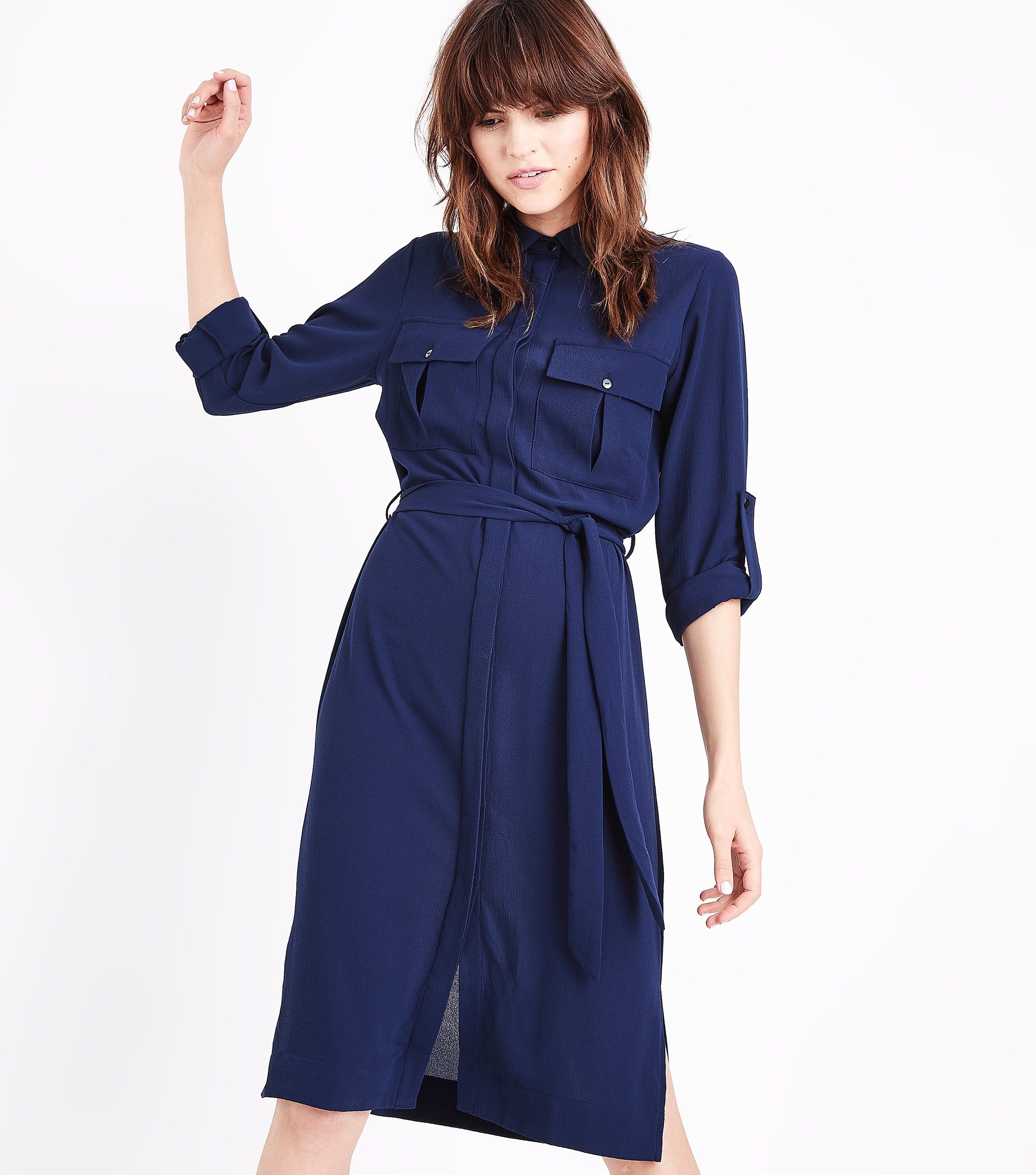 Navy Long Sleeve Pocket Front Shirt Dress €29.99, newlook.com