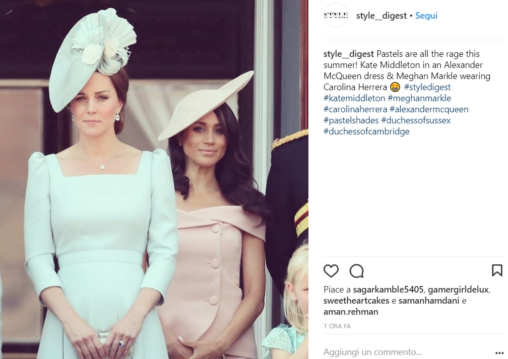 Dioi aver sfoggiato questa scollatura al suo matrimonio, Meghan l’ha riproposta ad inizio giugno quando, in occasione del Trooping the Colour 2018, ha sfoggiato un elegantissimo completo rosa confetto firmato Carolina Herrera con scollo a barca.