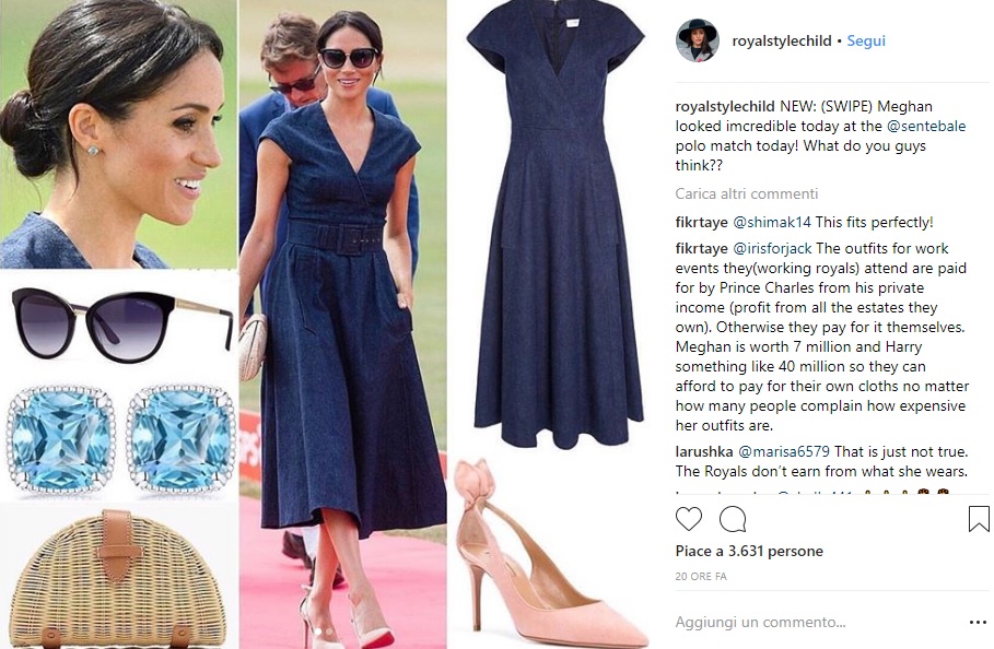LONDRA – Meghan Markle sdogana il total jeans ma commette un errore di bon-ton. Meghan Markle è apparsa bellissima e glamour in occasione del Sentebale Polo, gara di beneficenza a favore dei bambini africani malati di AIDS. Per l’occasione la Duchessa, che ha accompagnato Harry, ha sfoggiato un abito in jeans con gonna a ruota e cintura in vita dal sapore anni ’50 firmato Carolina Herrera, sdoganando di fatto il total denim in casa reale. Nemmeno Kate Middleton ha mai osato sfoggiare un abito interamente denim, nonostante abbia spesso scelto i jeans anche ad eventi pubblici. Scarpe con tacco Acquazzura, occhiali oversize Tom Ford e clutch in paglia, vero must have della stagione, firmata j Crew hanno completato il look incredibilmente glamour ma allo stesso tempo elegante e classico. Brava Meghan, questa volta la mise è azzeccatissima per l’evento di Polo.