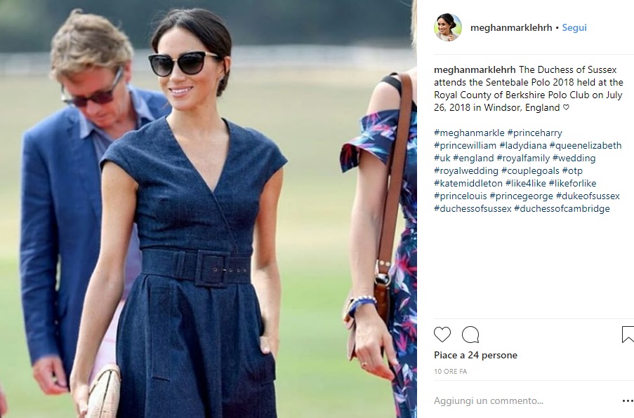 LONDRA – Meghan Markle sdogana il total jeans ma commette un errore di bon-ton. Meghan Markle è apparsa bellissima e glamour in occasione del Sentebale Polo, gara di beneficenza a favore dei bambini africani malati di AIDS. Per l’occasione la Duchessa, che ha accompagnato Harry, ha sfoggiato un abito in jeans con gonna a ruota e cintura in vita dal sapore anni ’50 firmato Carolina Herrera, sdoganando di fatto il total denim in casa reale. Nemmeno Kate Middleton ha mai osato sfoggiare un abito interamente denim, nonostante abbia spesso scelto i jeans anche ad eventi pubblici. Scarpe con tacco Acquazzura, occhiali oversize Tom Ford e clutch in paglia, vero must have della stagione, firmata j Crew hanno completato il look incredibilmente glamour ma allo stesso tempo elegante e classico. Brava Meghan, questa volta la mise è azzeccatissima per l’evento di Polo.