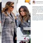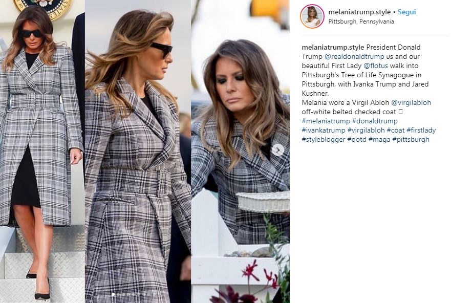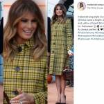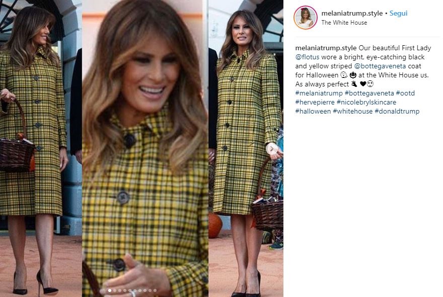 Soffermandoci sull’aspetto fashion, Melania ha indossato un cappottino nero e grigio a fantasia scozzese. Un capo firmato Virgil Abloh, l’eclelttico direttore creativo di Louis Vuitton men’s wear collection. La first lady ha optato nuovamente per lo scozzese anche ad Halloween, indossando un cappotto giallo e nero a quadri di Bottega Veneta.