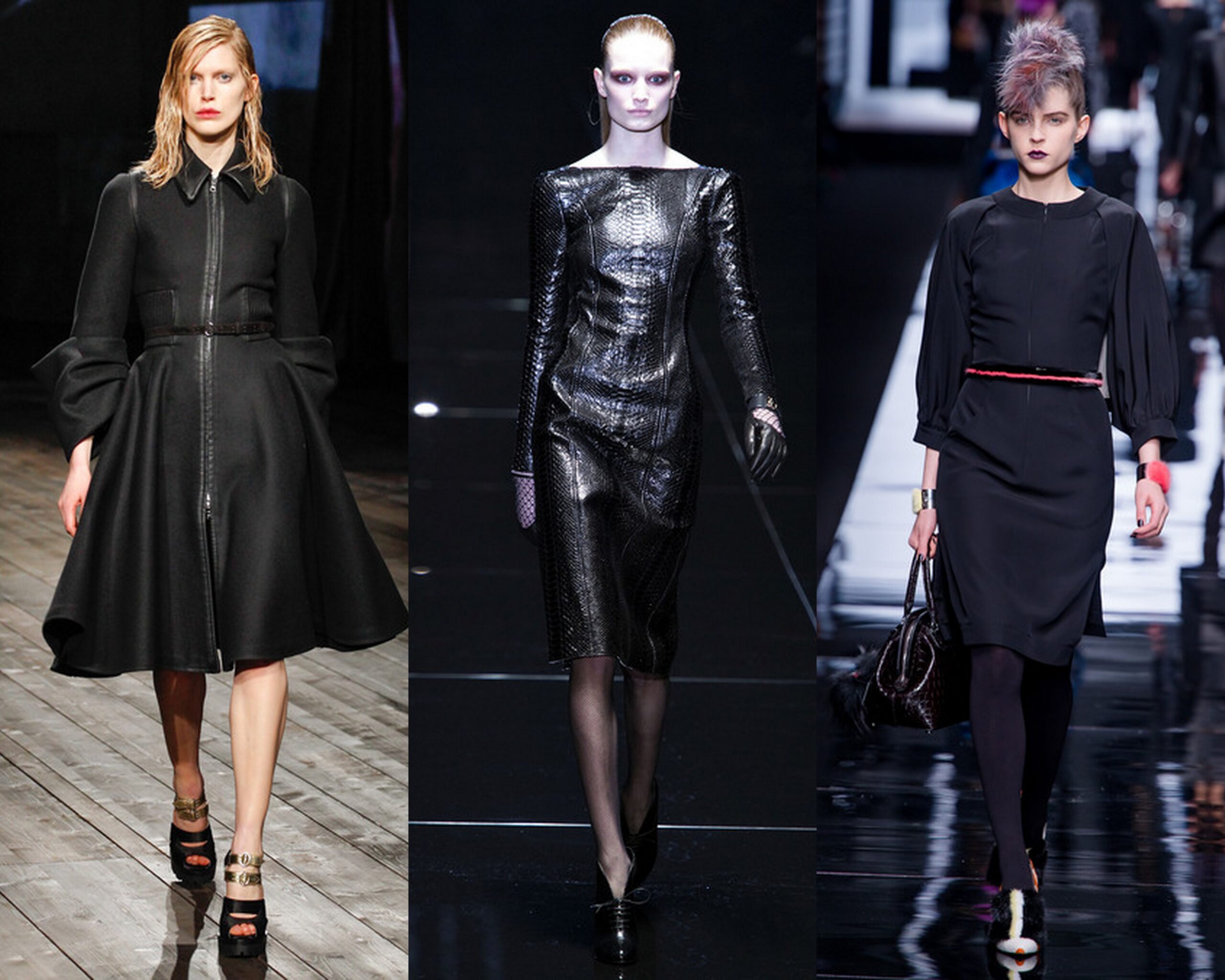 E, sarà il periodo di austerity, se è vero che la moda non rispecchia solo lo stile ma un vero e proprio momento sociale, non è un caso che il colore dominante anche il prossimo inverno sarà il nero. Insomma, se al centro del defilé non c’è proprio la Anjelica Huston che interpretava Morticia Addams, poco ci manca.