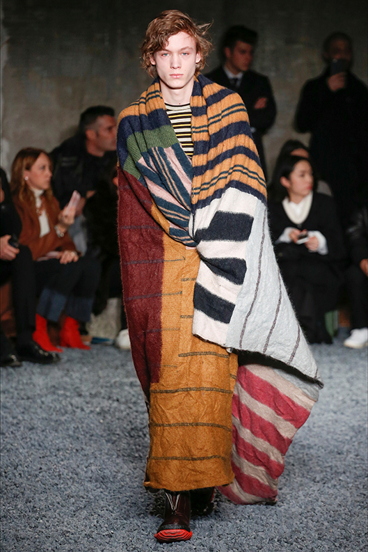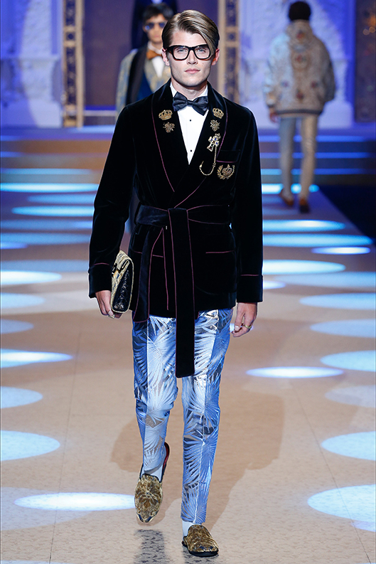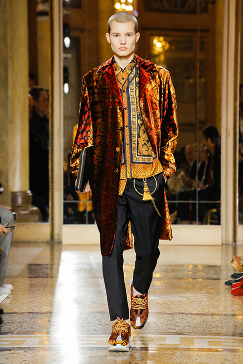 Scostumista-Milano Moda Uomo- Il mese di Gennaio si concentra sulla moda uomo. Dopo la 93° edizione del Pitti Immagine di Firenze iniziata l’8 Gennaio scorso e dedicata quest’anno al mondo del cinema che si sposa con quello della moda (titolo della kermesse era infatti “Pitti Live Movie”), sono seguite poi le sfilate di Milano. Per l’inverno 2018/19 le atmosfere sono calde e confortevoli, i colori sono terreni, con sfumature di senape, marrone bruciato, verde bosco, bordeaux. I tessuti tecnici lasciano il posto a morbide lane, alla classica vigogna, al cachemire, allo shetland. I maglioni si indossano anche sotto l’abito, è un’eleganza accogliente, ci si coccola con tessuti pregiati, caldi e avvolgenti. E Marni avvolge, nel senso più puro del termine, i modelli con ampie coperte colorate, come un involucro, un “bozzolo” l’abito protegge e rassicura. Il velluto è il protagonista assoluto: liscio in seta, trasforma bomber sportivi in capispalla eleganti, come quelli di Emporio Armani; ma anche blazer, cappotti, dalla linea ampia e morbida, o soprabiti ispirati alle giacche da camera di Dolce&Gabbana; i pantaloni sono ampi e cadono morbidi e lunghi dando modo così alle luci cangianti del tessuto di manifestarsi su tutta la lunghezza. Ma c’è anche il velluto operato, come quello utilizzato da Etro con il suo allure dandy/bohemien, e da Versace in versione grintosa animalier. I piumini lasciano il posto al montone e allo shearling, nonostante una piccola folla di manifestanti furiosi abbia cercato di bloccare l’ingresso allo show di Marni al grido:“Assassini! Assassini!” promuovendo i diritti degli animali. Per inciso, secondo il portavoce di Marni, non c’era nessuna pelliccia nella loro collezione, ma abbiamo visto piuttosto un mix di trame, tagli e tessuti con stampe insolite come orsetti gommosi, scimmie, bicchieri o chiavi che danno un’impronta ironica ad abiti la cui linea impeccabile è dovuta a dettagli sartoriali come i soffietti verticali che preservano la silhouette; o cappotti sportivi con cinture interne rimovibili. E’ di Neil Barret la collezione più austera, “I tessuti sono onesti, autentici e reali”. Ciò significa che i materiali della sua collezione sono puri e intramontabili come il cotone, la pelle e la lana. La collezione ha preso come base le divise militari che sono praticamente all’origine di tutti gli elementi fondamentali dell’abbigliamento maschile. Ralph Lauren ha mostrato la sua collezione Purple Label, con pantaloni dalle gambe asciutte e sottili, giacche da smoking in velluto e tartan e giacconi perfetti per un immaginario da campagna inglese. Kiton presenta la nuova collezione: KNT (Kiton New Textures), dove l’athleisure incontra la sartoria italiana, ci sono sneakers in tessuto e pantaloni da jogging adatti per una passeggiata al parco o in città, meno per una palestra. di Annapaola Brancia d’Apricena
