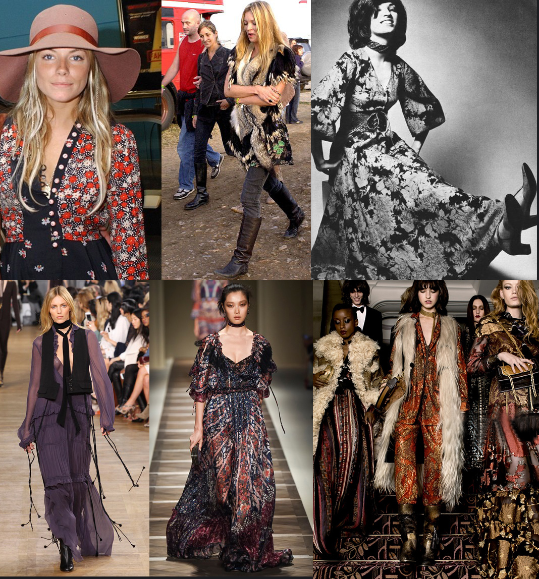 Si ritiene che il look Boho/chic, influenzato anche dallo stile hippy, sia nato intorno al 2004 grazie ad outfits superpaparazzati di Kate Moss e di Sienna Miller. Lo stile Boho di dieci anni fa rispetto a quello che si è visto nelle collezioni di questi ultimi anni si differenzia forse per il fatto che si avvicinava più ad uno stile hippy, una moda da concerto per intenderci (vedi i look di Glastonbury e Coachella), mentre nelle ultime sfilate c’è un richiamo più gipsy/chic.