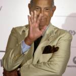 International designer Oscar de la Renta waves at a news conference in Mexico City, Friday, March 22, 2013. De la Renta is in Mexico City for a Friday evening fashion gala where he will present his Spring/Summer 2013 collection. (AP Photo/Marco Ugarte)