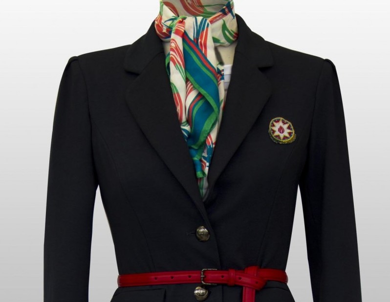 In particolare la divisa formale è composta da giacche in jersey pesante di cotone stretch abbinate a pantaloni chinos per l’uomo e a gonne affusolate per la donna, completata da camicie di cotone stretch, cravatte e foulard stampati su seta nei colori della bandiera.