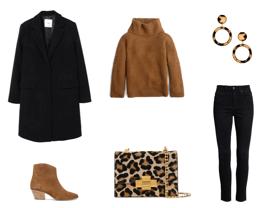L’outfit è quasi pronto: aggiungi un paio di orecchini animalier come questi di 8 Other Reasons e infine avvolgiti in un caldo cappotto nero per sentirti calda e confortevole. Se ti piace questo scelto da me, sappi che è di Mango e costa solo 149 dollari.