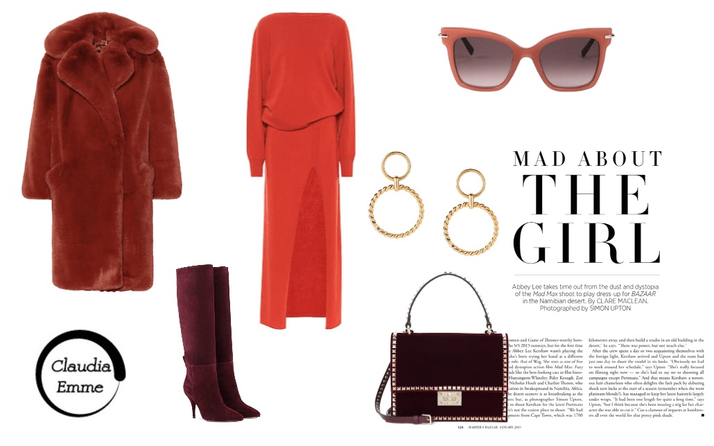 Aggiungi un caldo cappotto avvolgente, sempre di colore ruggine. Io ho selezionato questo meraviglioso faux fur Givenchy. In alternativa, Asos ne propone uno decisamente low cost.