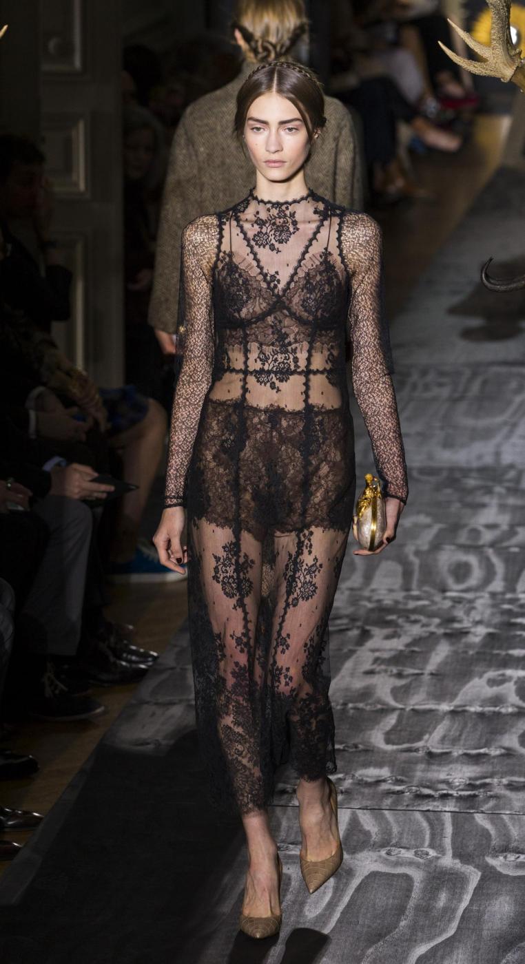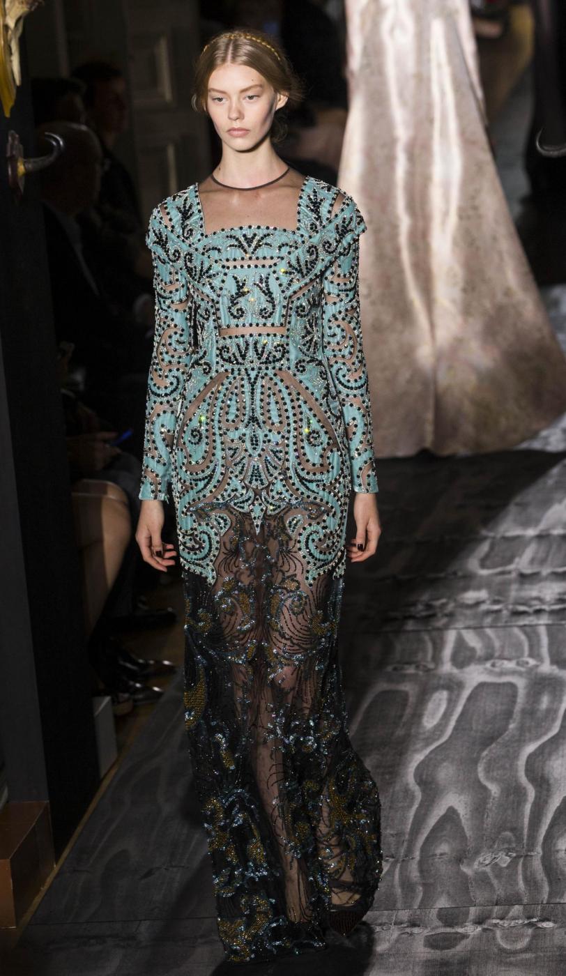 A model wears a creation as part of Valentino's Haute Couture Fall-Winter 2013-2014 collection, presented Wednesday, July 3, 2013 in Paris. (AP Photo/Jacques Brinon)