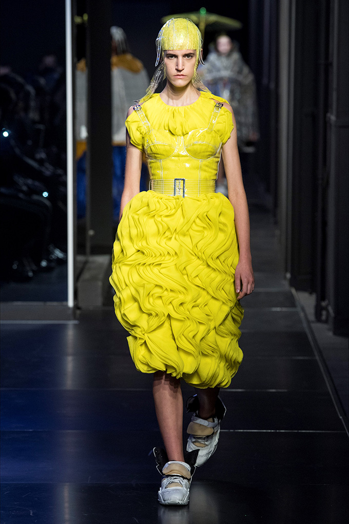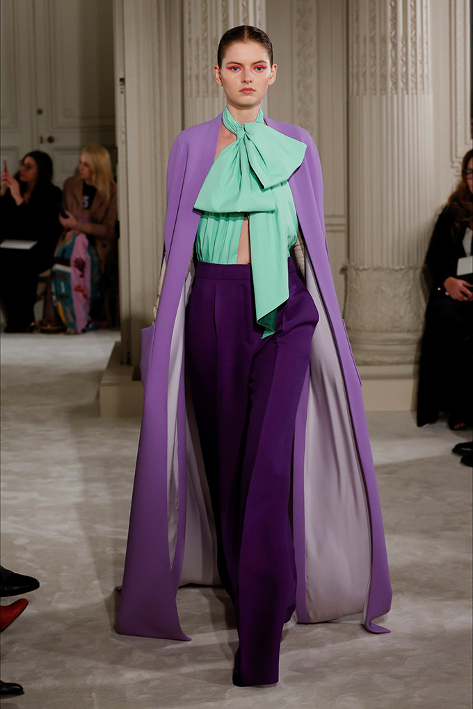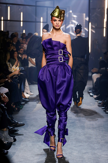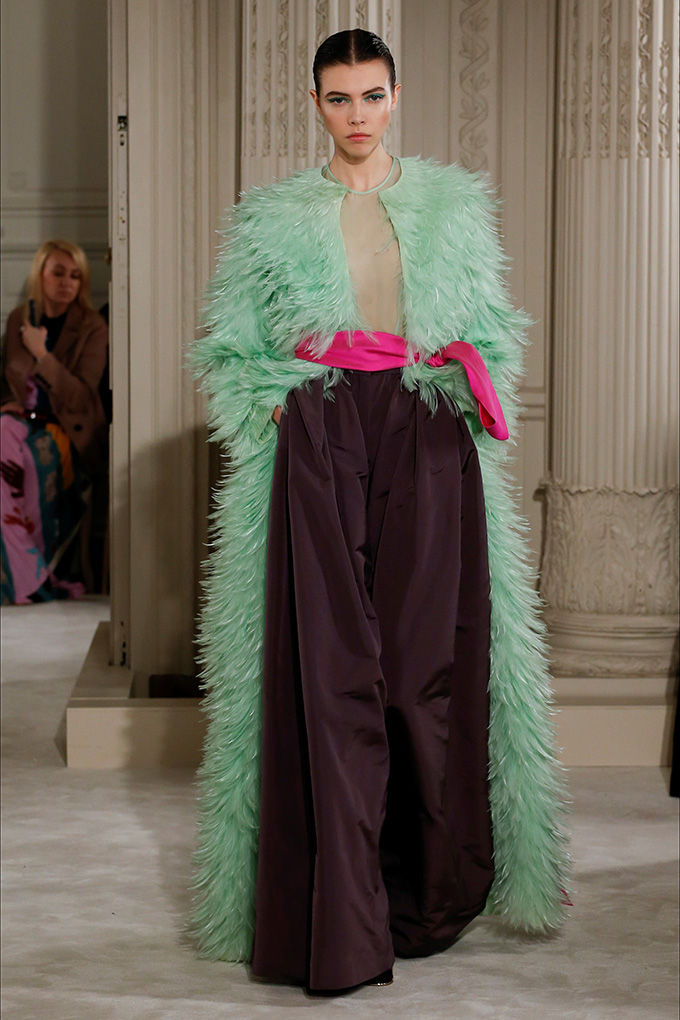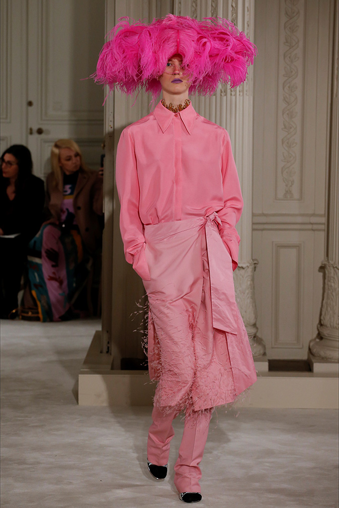 Scostumista-PARIS HAUTE COUTURE P/E 20182018 Parte 2°-Gli ultimi due giorni delle sfilate Paris Haute Couture P/E2018, sono state molto diverse dalle prime due. In un certo senso nella prima parte della kermesse abbiamo visto sfilare i grandi marchi storici della capitale francese come Chanel, Dior, Givenchy, Schiaparelli, ma anche Giambattista Valli e Armani Privé che con i loro abiti da sogno ci hanno fatto catapultare in quel regno esclusivo dell’alta moda dove l’artigianato, le lunghe ore di lavoro di sarti e ricamatori si palesano in modo evidente su ogni abito. In queste ultime due giornate la sensazione è stata più quella di aver assistito allo show di collezioni più urbane, visivamente non tanto diverse da quelle del pret-a-porter. Non è un caso che la collezione disegnata da John Galliano per Artisanal di Maison Margiela – come spiega Renzo Rosso (proprietario della società Only the Brave cui fa capo Maison Margiela) – inizialmente non era destinata ai clienti couture, ma come ispirazione per l’atelier per poi creare la linea di prêt-à-porter destinata alla vendita. Artisanal è solo un prototipo, viene dato a musei o gallerie d’arte, non si vende, ma i dettagli entrano nella collezione commerciale. E la collezione è un sovrapporsi di materiali catarifrangenti, cappotti abbaglianti di poliuretano si sovrappongono ad abiti in tulle o chiffon, corpetti in pvc escono prepotentemente da abiti al neon, le linee sono sportive e completano i look grosse sneakers ai piedi e cuffiette di gomma sul capo. Alexandre Vauthier parte dagli anni ’80 esasperandone ulteriormente le linee: spalle enormi strutturate, ampiezze su pantaloni e tute che si restringono drammaticamente al polpaccio; Bella Hadid indossa una giacca di seta con stampa maxi-tartan dalle spalle architettoniche da cui spunta un gigantesco collo di rouches che a confronto, quelli che solitamente indossava Prince risultano quasi impercettibili, paradossalmente minimali. Una moda che piace ai millenials che quegli anni, gli originali “eighties” non li hanno vissuti. Belli gli occhiali che Vauthier ha disegnato in collaborazione con Alain Mikli di cui Kate Moss è testimonial. Anche Elie Saab attinge dal passato, sono gli anni ’20 che ispirano il designer il quale ci mostra abiti lunghi e ricchi, ricchissimi di orpelli: cristalli, piume, ricami, pizzi che ornano trasparenze delicate, tessuti leggeri dai colori polverosi che spesso vengono sigillati da una grande nocca di raso alla base del collo. Non potevano poi mancare gli anni ’60, e questa volta ad attingere da lì è ‘l’enfant terrible’: Jean Paul Gaultier che omaggia Pierre Cardin e la sua lunghissima carriera, il quale ha avuto il momento di massimo splendore proprio nei favolosi Sixties, e Gaultier ripercorre i giochi optical di bianco e nero, le righe asimmetriche, i mini dress, ma va avanti e rielabora le silouhette, vi aggiunge frange, i colori si accendono e quelle linee geometriche considerate per quegli anni avveniristiche, si fanno più morbide, gli anni ’60 diventano accenti, pallidi accenni. Perfetti gli smoking doppio petto con pantaloni a sigaretta. “La Gaite Lyrique” è il titolo della collezione di Viktor&Rolf, una collezione tutta costruita con il satin giapponese, che si intreccia in nastri su abitini cortissimi o si trasforma in applicazioni naïve di grossi fiori che si inerpicano su lunghe gonne e su tuniche, o in ampi colli tribali ridisegnati con rouches e frange. Una delle più belle collezioni del duo olandese. E poi finalmente c’è lui, Valentino e il talento di Pier Paolo Piccioli. Ci sono gli abiti da sogno, si, ma i veri protagonisti sono gli outfit urbani resi supremi dai tessuti, dai tagli e da accostamenti cromatici azzeccatissimi: c’è una blusa in seta glicine pallido su una lunga gonna viola acceso e una cintura gialla in vita; c’è un pantalone melanzana con un top verde menta; una fascia fuxia in vita separa il bianco della camicia dal senape dei pantaloni. E’ un Haute Couture che ci immerge nel quotidiano, perché per essere meravigliose non bisogna per forza calpestare un red carpet. di Annapaola Brancia d’Apricena