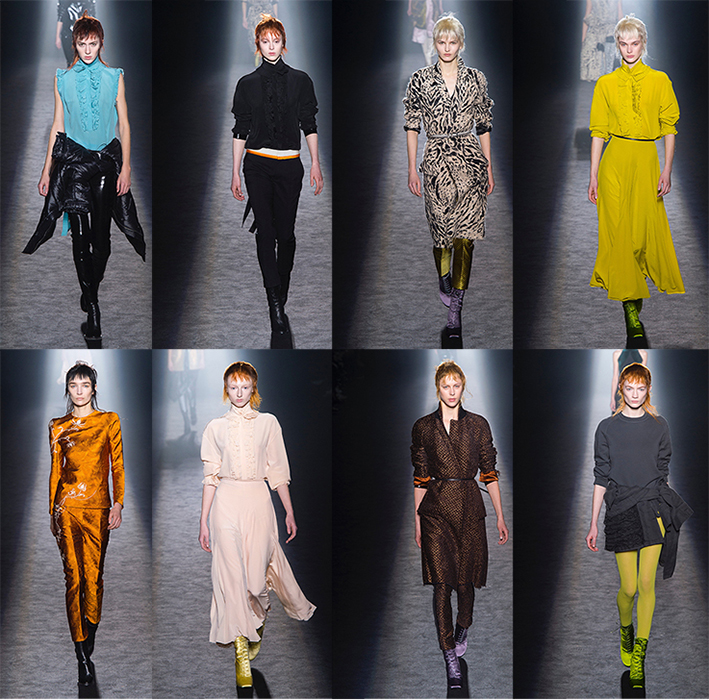 Scostumista-PFW F/W 2018-19 – Si è chiusa ieri anche la settimana della moda parigina dove sono state presentate le collezioni per il prossimo inverno. Un calendario ricco di appuntamenti. Distratti solo dai red carpet dei 90th Academy Awards e in minor misura dalla francesissima cerimonia dei Cesar Awards, i “fashion addicted” si sono concentrati sulle creazioni dei designer francesi e non, che ci hanno mostrato durante questi nove giorni della PFW. Abbiamo visto un proliferare di stampe animalier, di tessuti spalmati e pelle argentata, di spalle esagerate e ispirazioni anni ’80. Niente di tutto ciò si trova nella collezione Jacquemus che ha aperto le sfilate di Parigi con abiti sobri, sofisticati e minimali, di ispirazione nordafricana, dai colori neutri e terreni, e dalle linee fluide e avvolgenti. Di tutt’altra natura è la collezione Christian Dior dove il patchwork e i minidress nascono dall’ispirazione che Maria Grazia Chiuri ha avuto da quel ’68 fatto di rivolte femministe in cui si pretendeva anche una moda più pratica e accessibile. Cortissimi gli abiti e gli short che Anthony Vaccarello progetta per Saint Laurent, ai piedi della Tour Eiffel sfilano ragazze sexy e forti, le gambe sono raramente coperte e in quel caso i pantaloni sono attillatissimi, le scollature profondissime, completano i look, boots in pelle con platform, sandali stiletto con piume e cappelli borsalino. L’esercito Balmain di Olivier Rousteing scintilla con cristalli, pelle argentata, effetti fluo, pvc, e metallo; è il futuro ad ispirare il designer che dopo sette anni alla guida creativa del brand progetta a mio avviso una delle collezioni più belle. Materiali come pvc, nylon, poliuretano, pelle e tulle vengono assemblati in modo insolito dal genio di John Galliano che con questa collezione per Maison Margiela si riappropria dei codici della Maison aggiungendoci una sua visione più glamour. La maglia in metallo, il pvc e le maxi paillettes fanno parte del Dna di Paco Rabanne che Julien Dossena rilegge magistralmente, e con questa collezione omaggia il talento visionario del fondatore. L’abilissimo mash-up di streetwear con abiti da lavoro, di abiti couture con athleisure, giacche corte, hotpants e corsetti intessuti con arazzi pastorali, cappe ulta-chic e camicie bianche con pantaloncini sartoriali, giustificano il successo di Virgil Abloh e l’ascesa del marchio Off-White. “Pensavamo che il romanticismo fosse qualcosa di fragile, qualcosa di simile all’amore, ma per me romanticismo significa un approccio individuale alla vita più appassionato, più emotivo, più umano. Oggi il romanticismo non è una debolezza, è una forza. Puoi essere assertivo e non essere aggressivo. Per me essere romantico oggi significa essere più forti”. Con questa collezione di Valentino Pier Paolo Piccioli ha trasformato gli stereotipi del romanticismo in qualcosa di più audace e forte senza mai avventurarsi sul territorio maschile. Gli orli smerlati, le cappe, le sfumature e gli accostamenti cromatici straordinari, le lunghe tuniche e le stampe vestono le donne che vogliono affermarsi nel clima socio-politico creato dall’attuale eliminazione del privilegio maschile. “Night Noir” è il titolo che Claire Waight Keller ha dato alla collezione di Givenchy, i riferimenti sono il cinema noir anni ’80 e la scena club della New York anni ’90, filtrati dagli elementi di Hubert de Givenchy come i piccoli abiti strutturati con balze rigide a cascata, le frange sexy e i grandi fiocchi ispirati agli archivi del marchio francese; grintosa e glamour è l’estetica che la Keller restituisce alla Maison tanto amata da Audrey Hepburn. E’ il cinema degli anni ’70 che invece ispira Natacha Ramsay-Levi’s che alla seconda collezione che progetta per Chloé propone una ragazza forte, sexy e moderna, ma dal sapore vintage. Gli anni ’70 degli artisti e creativi italiani open minded, curiosi, intellettuali, come Alighiero Boetti e Francesco Clemente hanno invece ispirato Giambattista Valli: giacche in pelle beatnik e pantaloni a zampa a vita bassa, lunghi abiti da giorno e maxi cappotti di pelliccia o in velluto, lo spirito di Valli è bohémien ma fondato nel lusso. Il più lussuoso dei marchi fa sfilare tute attillate in nappa nera, gonne in pelle con trapuntatura da motociclista, trench e abiti in suade: è chiaramente la pelle l’elemento su cui ruota la collezione che Nadège Vanhee-Cybulski progetta per Hermés, materiale che fa rabbrividire la più ecologica delle designer: Stella McCartney – nella collezione A/I 2018-19 le sneakers in ecopelle si abbinano con le tuniche indossate sui pantaloni, con le cappe, con i cappotti e i pantaloni jogging, ma anche sotto vestiti di pizzo che in realtà sono abiti da sposa vintage riassemblati. Lo scricchiolio delle foglie secche sotto i piedi è il sound che accompagna la sfilata di Chanel, il Grand Palais trasformato in un bosco autunnale, fa da sfondo a modelli scuri, sobri, malinconici: il tweed, il pizzo, l’oro, il marrone, il verde muschio, la terra bruciata ci riportano alla stagione meno radiosa, ma con una tristezza quasi dolce e pacata che dona agli abiti un’eleganza superba. di Annapaola Brancia d’Apricena