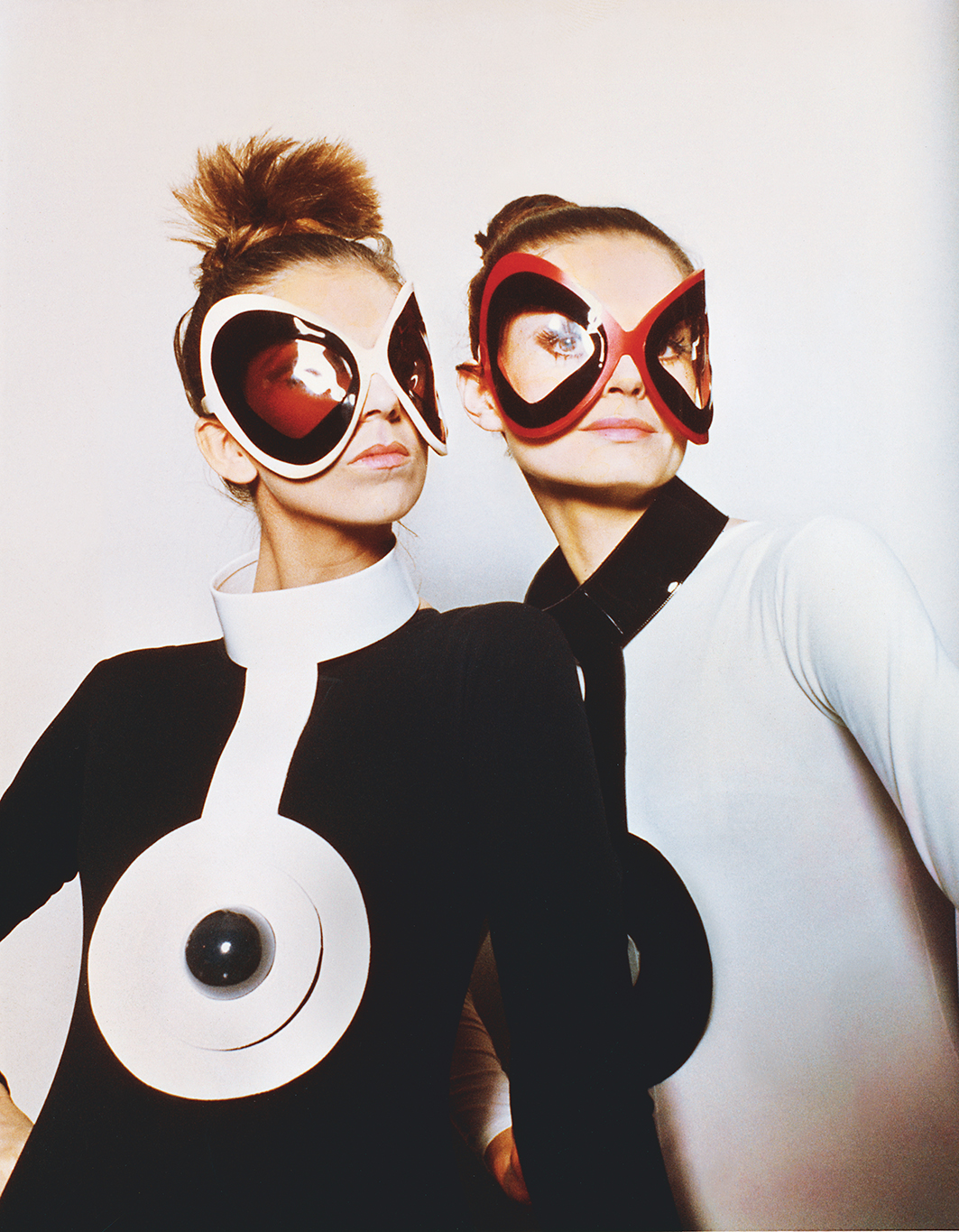 Occhiali e collane in vinile Collezione Autunno 1970 © Archives Pierre Cardin