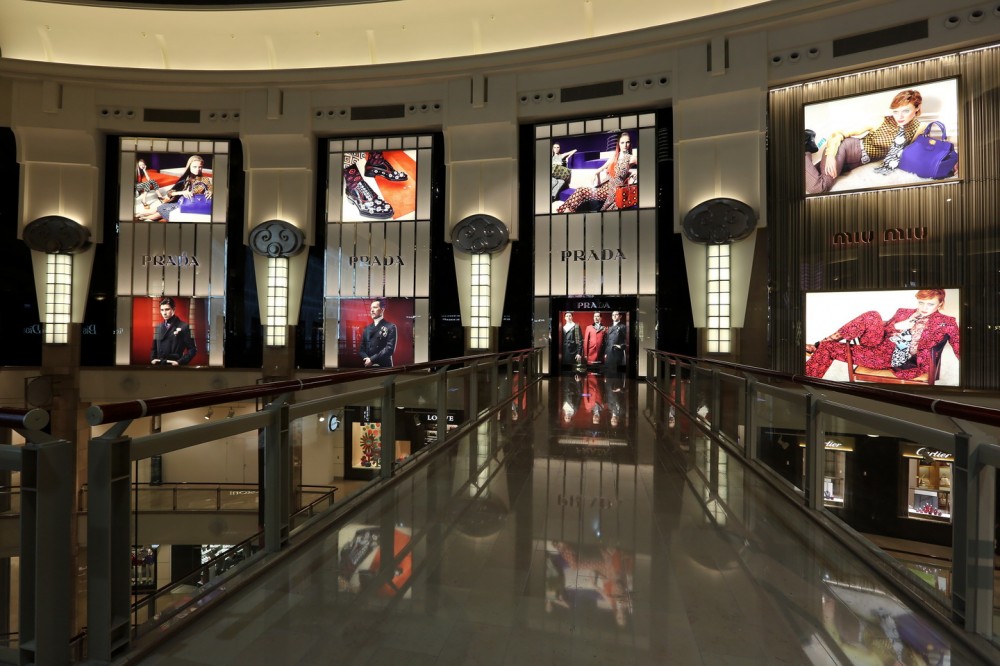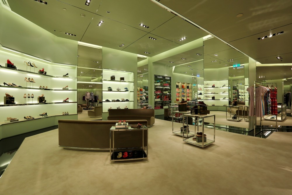 Per quanto riguarda il negozio di Prada, è formato da 550 metri quadri di superficie disposti si due livelli, racchiusi dalla raffinata facciata in cristallo e tenda di lamiera forata e