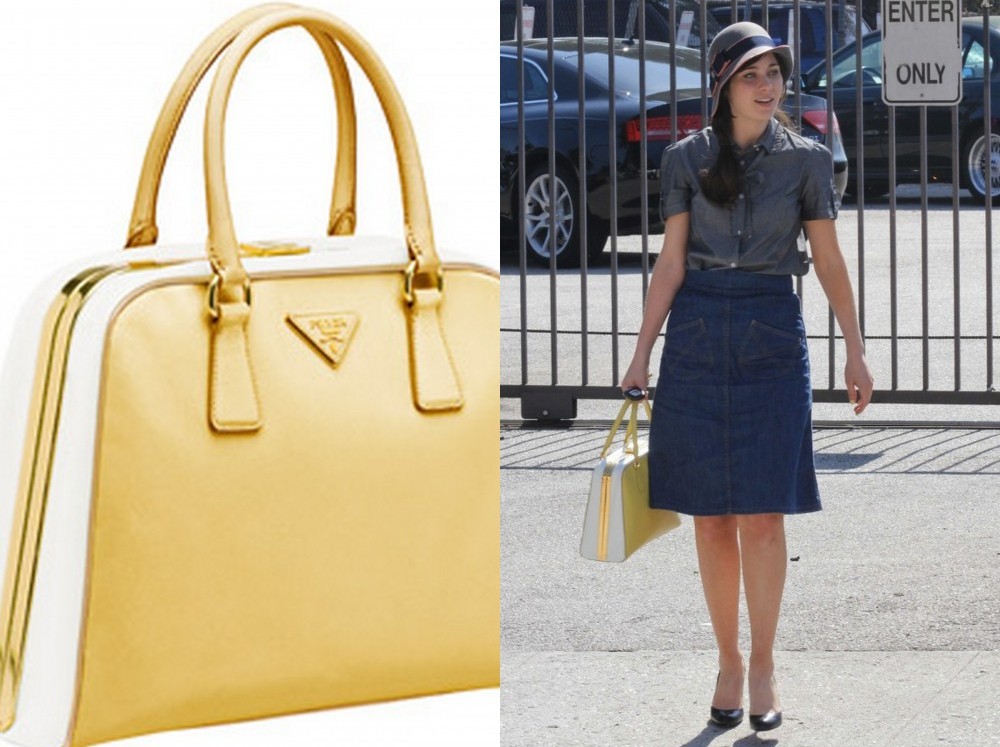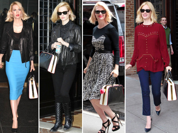 January Jones indossa la Pyramide Prada bag in vari outfit