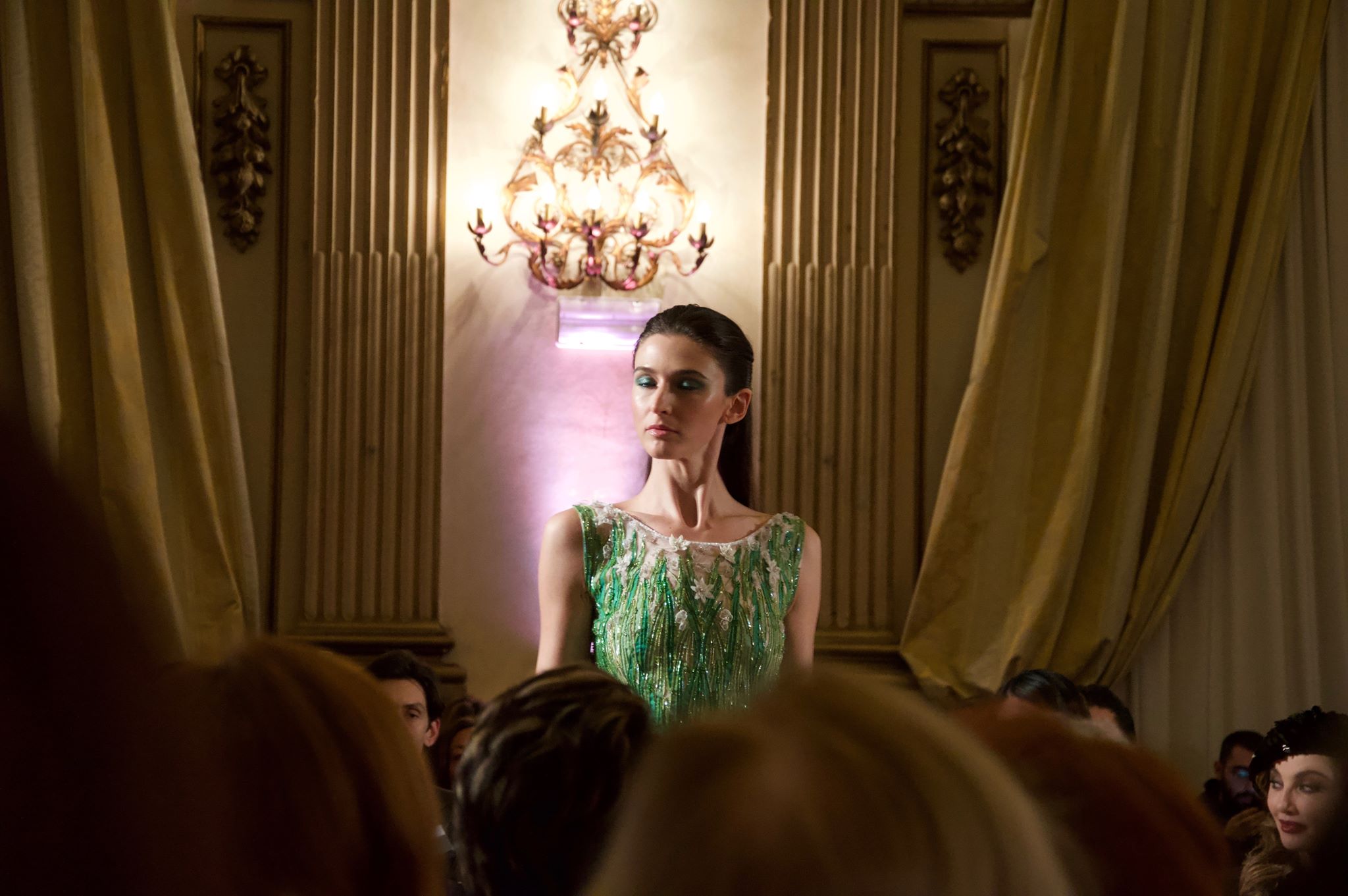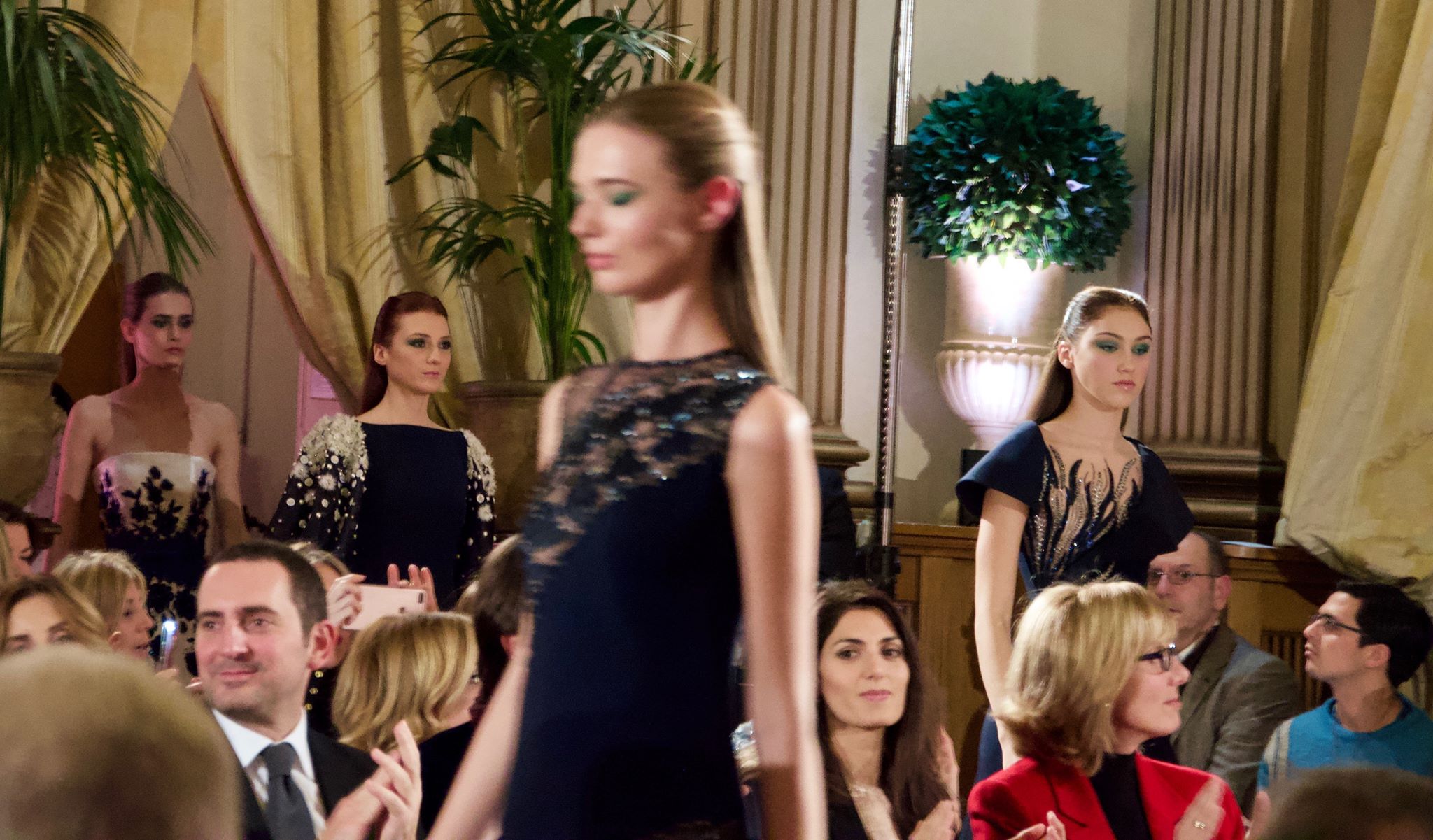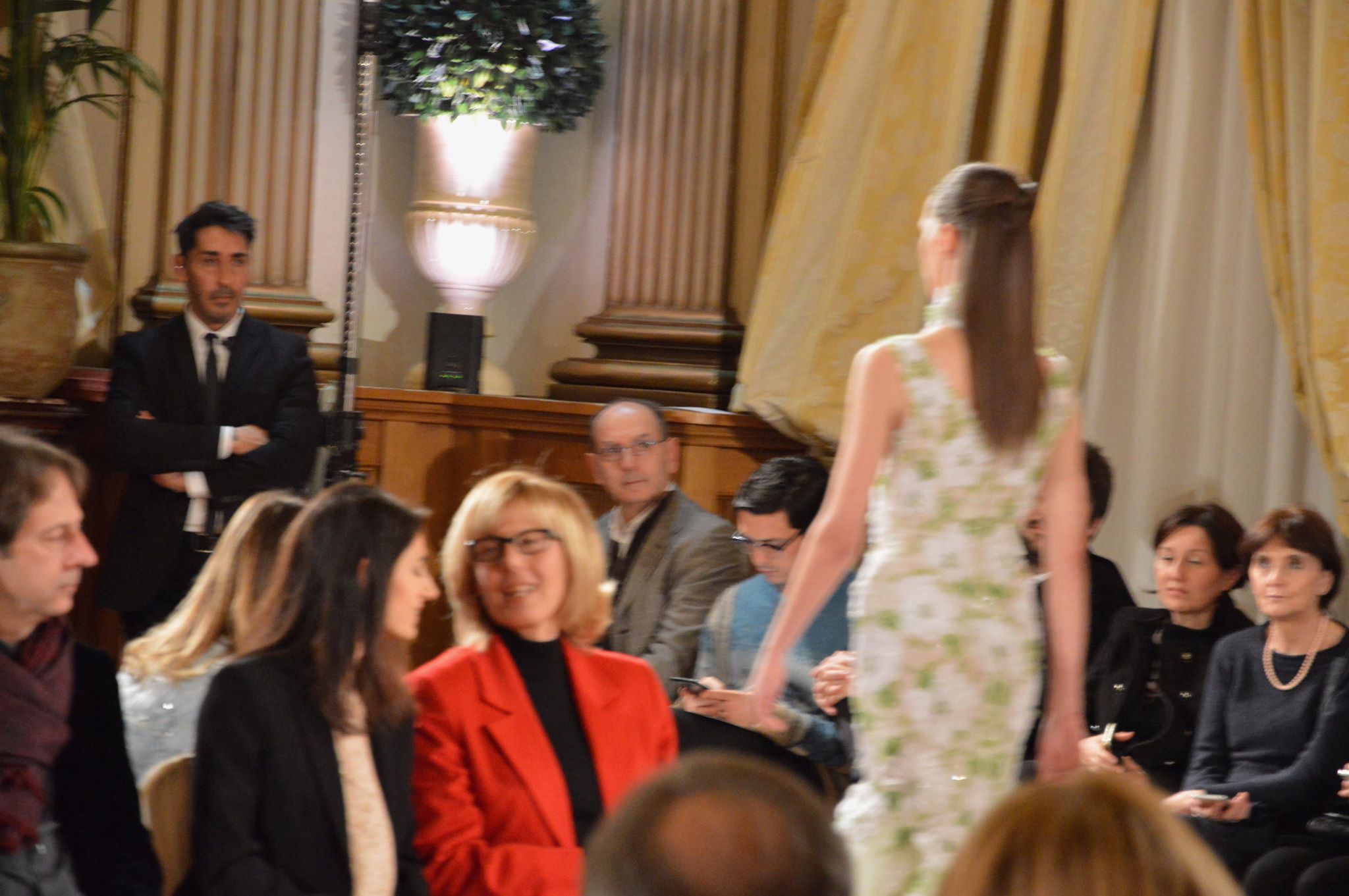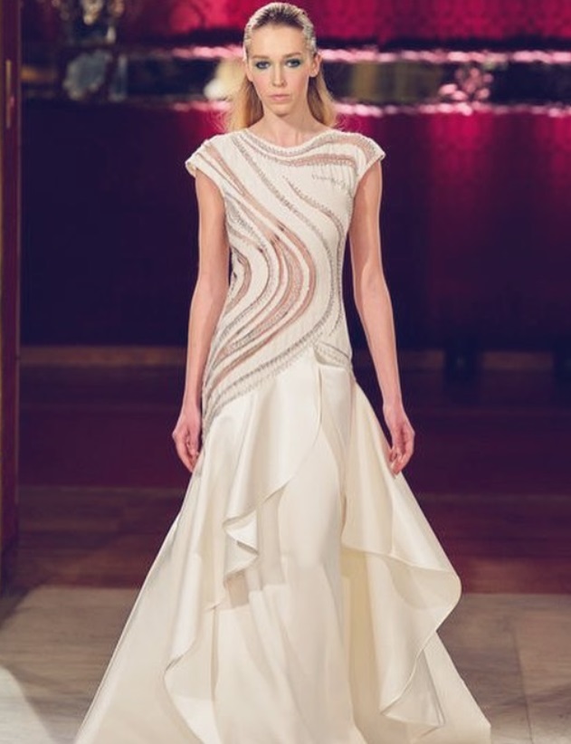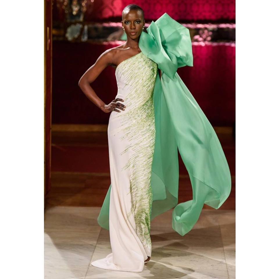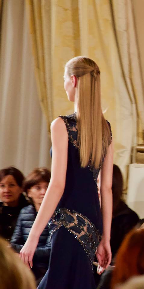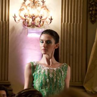 Gli abiti, di alta sartoria e indiscutibile livello, si alternano tra giochi di organze, chiffon, fiori (pochi) e sapienti tocchi di cristalli. La collezione, che non appare mai leziosa, scorre fluida e piacevole. Il giardino, dicevamo, è il filo conduttore di tutta la collezione ma la vera magia di Balestra è quella di riuscire a rappresentare una giovane primavera pur presentando una ridottissima quantità di fiori. Delicati fili d’erba si posano su abiti raffinati, il verde si alterna in tutte le sue sfumature, da quella più tenue a quella più decisa, pur lasciando spazio al bianco, che evoca delicate margherite, e al blu notte, magica notte incantata.