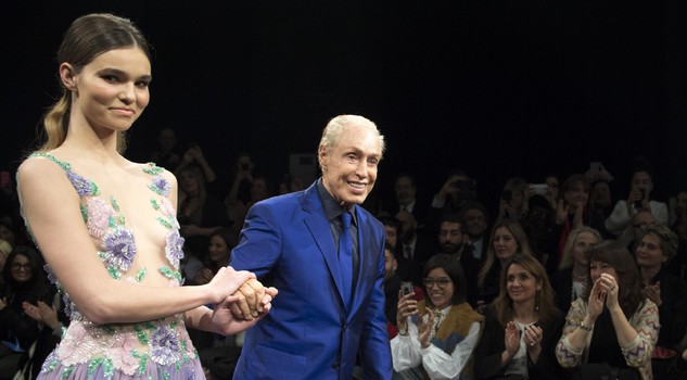 Lo scorso gennaio Renato Balestra ha presentato la nuova collezione haute couture ispirata al risveglio di primavera. Un mix tra fiori ancora racchiusi in boccioli, colori tenui, come il glicine, il rosa, il verde pastello ed il celeste acquamarina. La sfilata si è aperta con un abito in chiffon tutto drappeggi, nella gamma dei colori della collezione: una Venere botticelliana dai capelli cosparsi di petali colorati. Fiori e volute di piccoli ventagli plissé in taffetà e chiffon ornano le giacche e gli abiti da cocktail e da gran sera. La donna di Renato Balestra, romantica e sensuale, indossa abiti che diventano essi stessi fiori carnosi attraverso le rouches di micro plissé che si stringono attorno al busto. Modelli a sirena color turchese che hanno fiori-oblò intagliati, velati dal tulle con bordi ricamati con cristalli Swarovski. (Ansa).