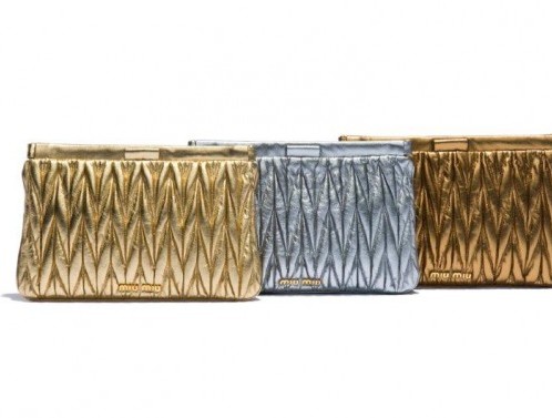 Cromie “metalliche” per gli accessori: bauletti in madras o nappa matelassé, sandali e stringate in nappa silk, declinati nei toni brillanti dell’oro, argento e bronzo. Ricami e riflessi preziosi nei bijoux: cerchietti, spille e trick in raso e pelle, decorati con micro cristalli e specchi applicati a mano, ispirati alla sfilata Autunno / Inverno 2012. In edizione limitata presso selezionate boutique del marchio.