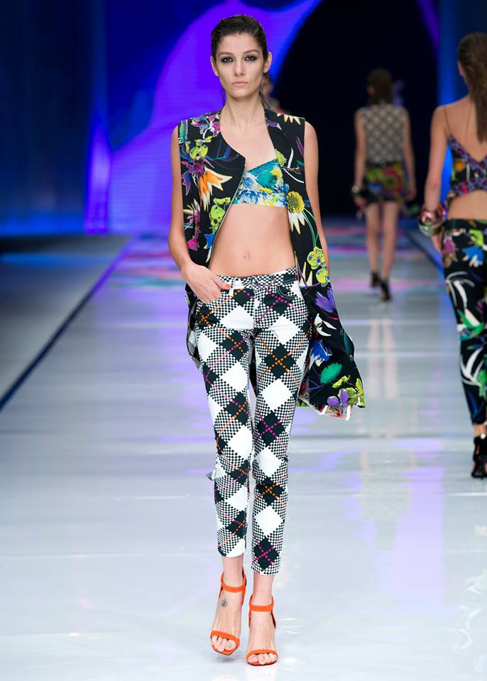 “Secondo Gaetano Navarra, invece, lo stampato micro e d’ispirazione maschile diventa macro in un attimo grazie a un gioco di pieghe e risvolti. Roberto Cavalli per la sua linea più giovane, Just Cavalli, abbina quadri e rombi e colori diversi in completi aderenti che, però, sono coordinati da un’uguale tonalità di fondo. Una party girl affascinantemente sbadata è la musa di Saint Laurent, tra righe e animalier glitterati e un po’ di trucco sbavato. Chi, invece, vuole sperimentare ma con moderazione può prendere ispirazione da Moncler Gamme Rouge, che mixa con discrezione grandi righe orizzontali e un check nello stesso tono cromatico. Oppure affidarsi agli accessori. Le open toe di Giuseppe Zanotti non si fanno mancare nulla: fantasia leopardata, a pois, bordature in giallo e azzurro e tacco a spillo. Zagliani propone una borsa double face, con interno a contrasto mentre a.testoni per le sue scarpe rosse dipinge di blu la punta arrotondata. Infine, ci si può sbizzarrire anche in riva al mare. Roxy propone due pezzi dove il sopra non è mai uguale al sotto. Attenzione, però: ci deve essere un comune colore di base, altrimenti l’effetto non è più glamour, ma trascurato, tanto più nella poca stoffa di un due pezzi”