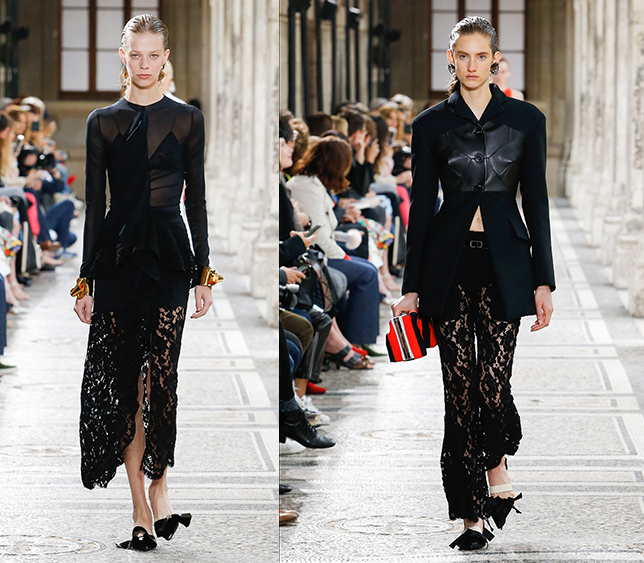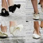 Proenza Schouler (questo il nome delle nonne di Lazaro Hernandez e Jack McCollough) e le sorelle Kate e Laura Mulleavy di Rodarte abbandonano così la New York fashion week, e il 2 luglio a Parigi al chiostro del Lycée Jacques-Decour, il duo new yorkese ha presentato una collezione dai colori basici: nero, avorio e rosso, dalla silouhette allungata e ingentilita da rouches, sovrapposizioni, pannelli, pantaloni di pizzo e giacche avvitate. Saltano all’occhio le scarpe: flat con motivi ad onda, assolutamente uniche.