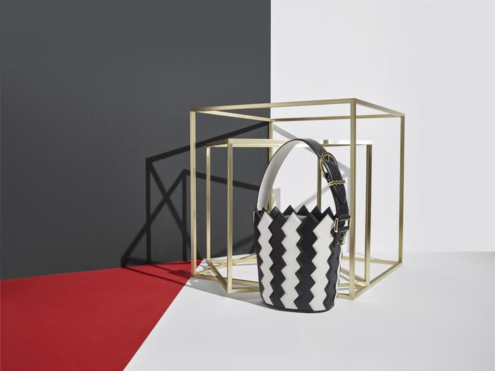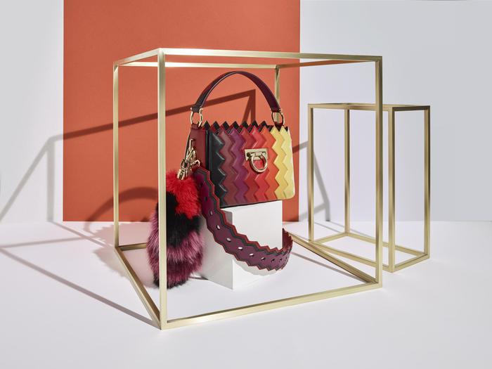 Composta da sei modelli di borse realizzate in varie dimensioni, la collezione creata da Sara Battaglia gioca sull’unione di due elementi distintivi della griffe: il motivo a zigzag e il “Gancio”, emblema della maison. Dal repertorio di modelli storici fino all’attuale collezione pret à porter A/I, il motivo a zigzag è da sempre un elemento caratteristico della maison e la designer lo reinterpreta con forme e colori nuovi.